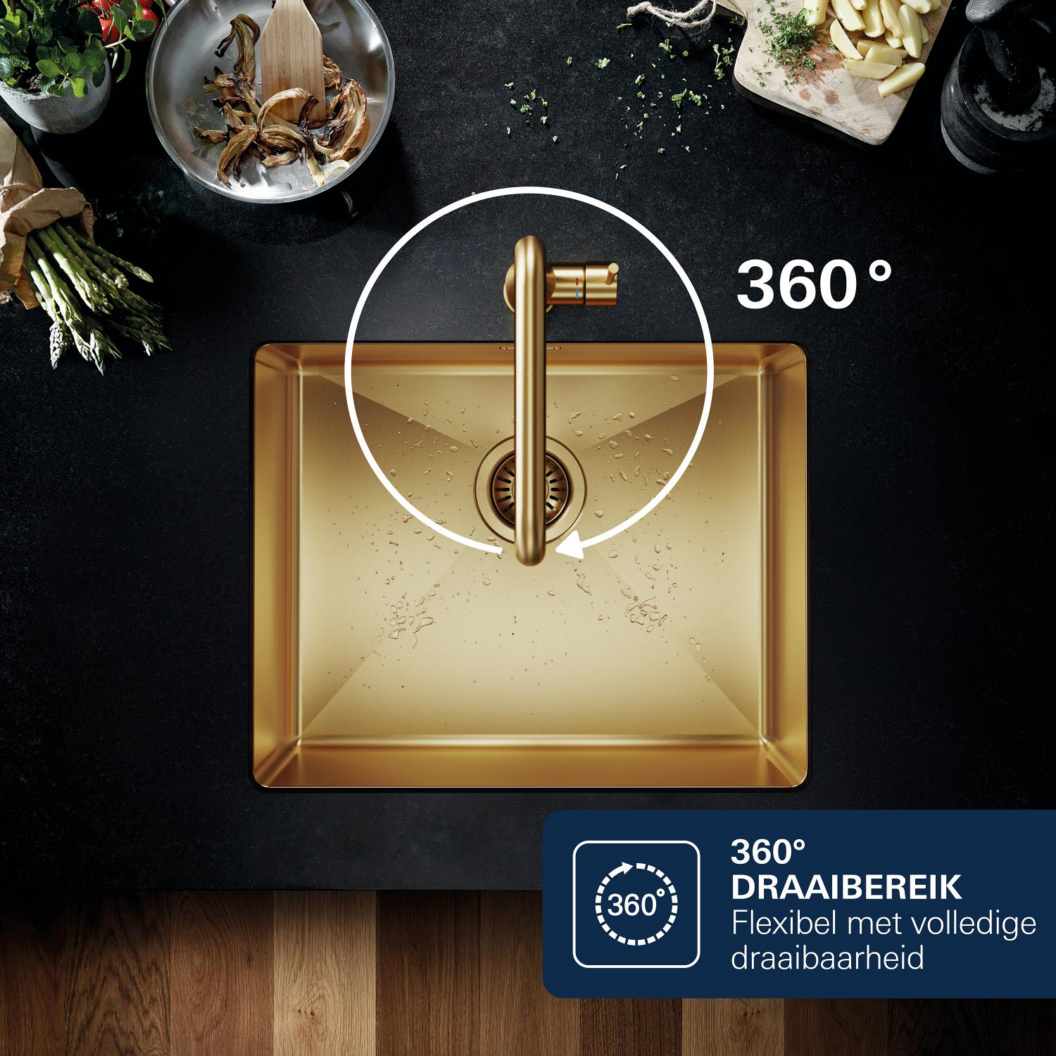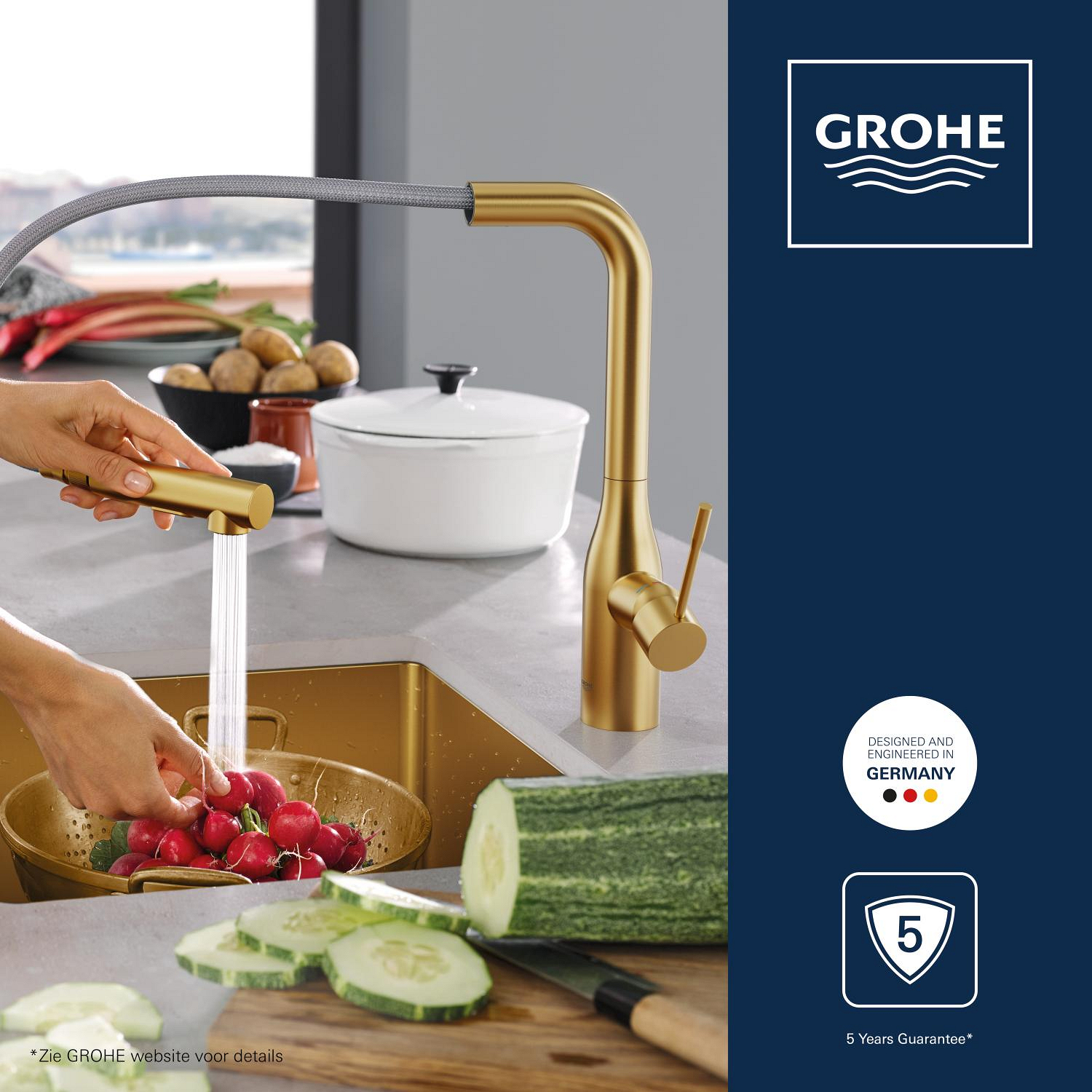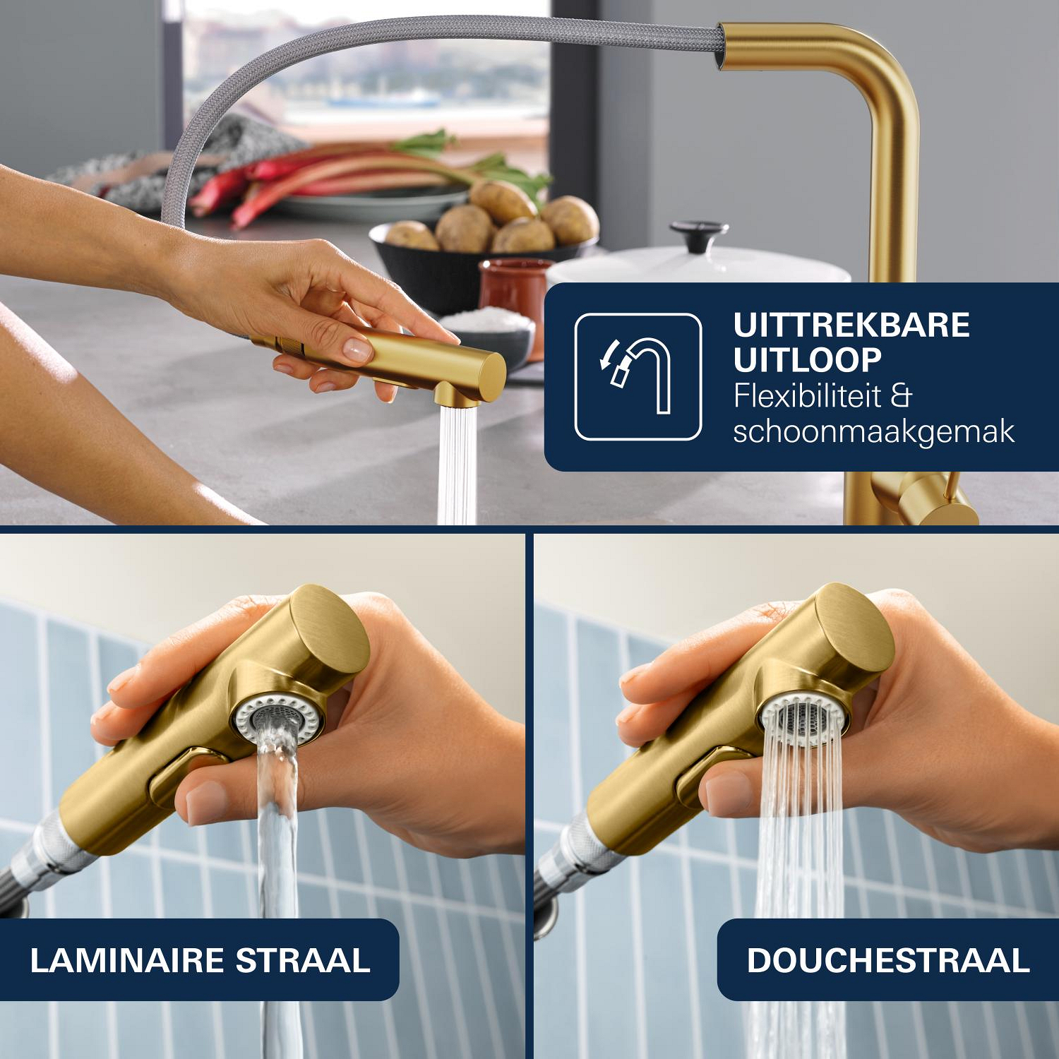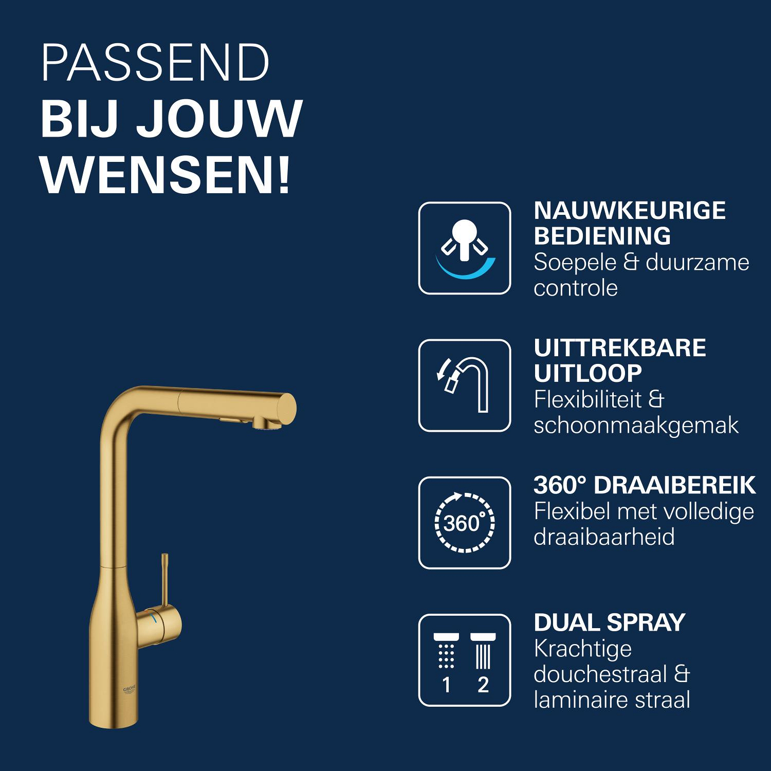 Essence keukenmengk. L-uitloop dual spray cool sunrise geborsteld (mat goudkleurig) Grohe