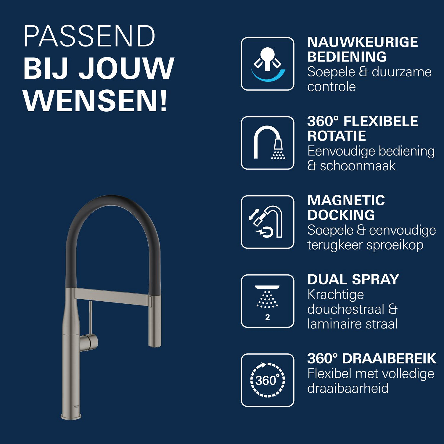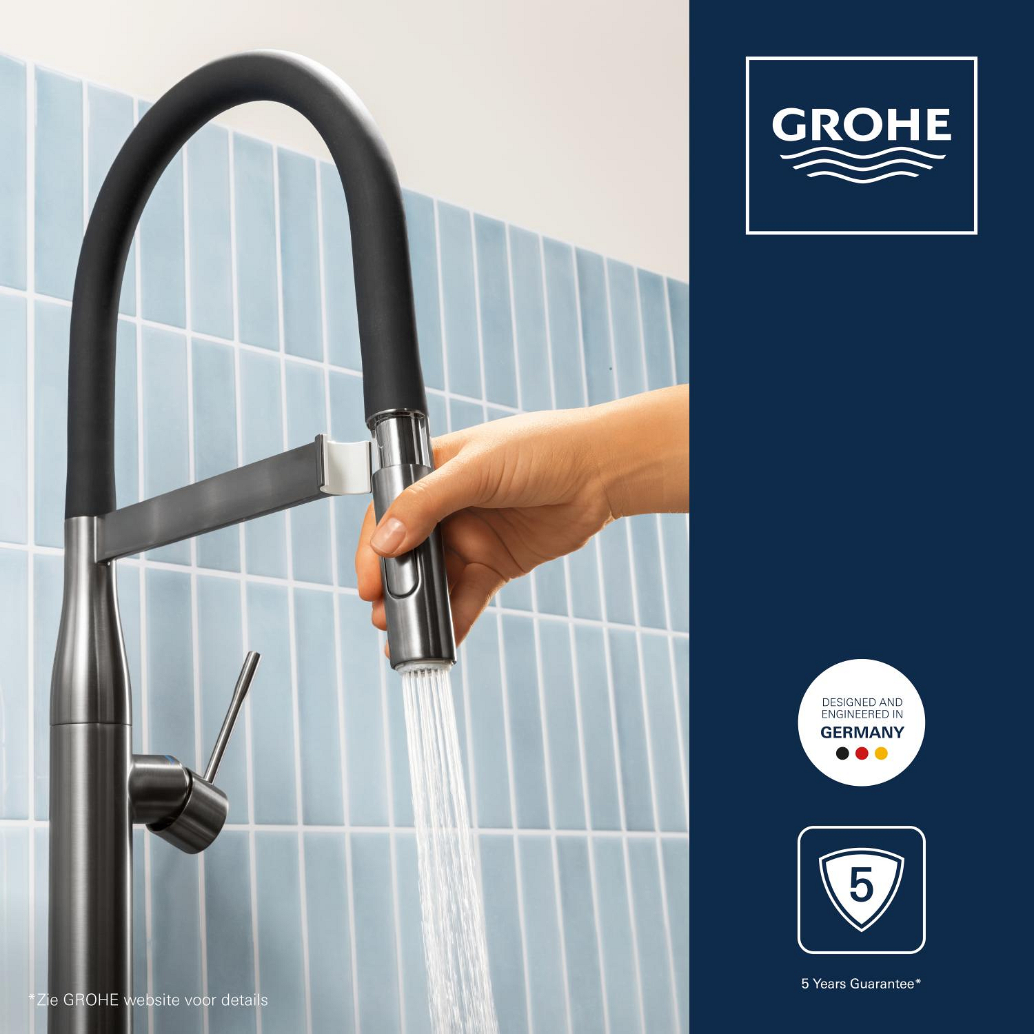 Essence new keukenmengkraan professspray hard graphite geborsteld (mat donker grijs) Grohe