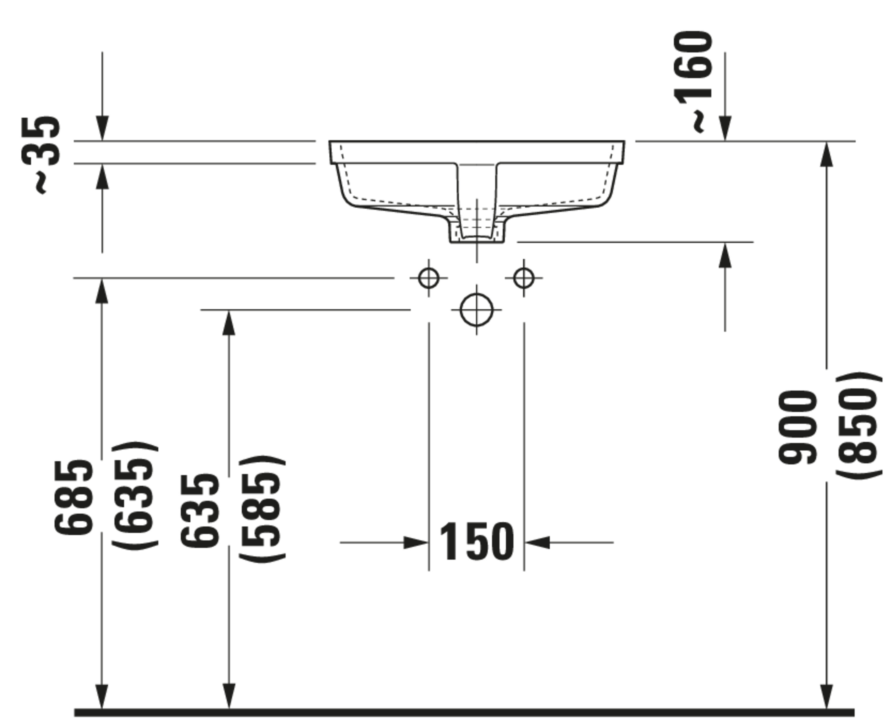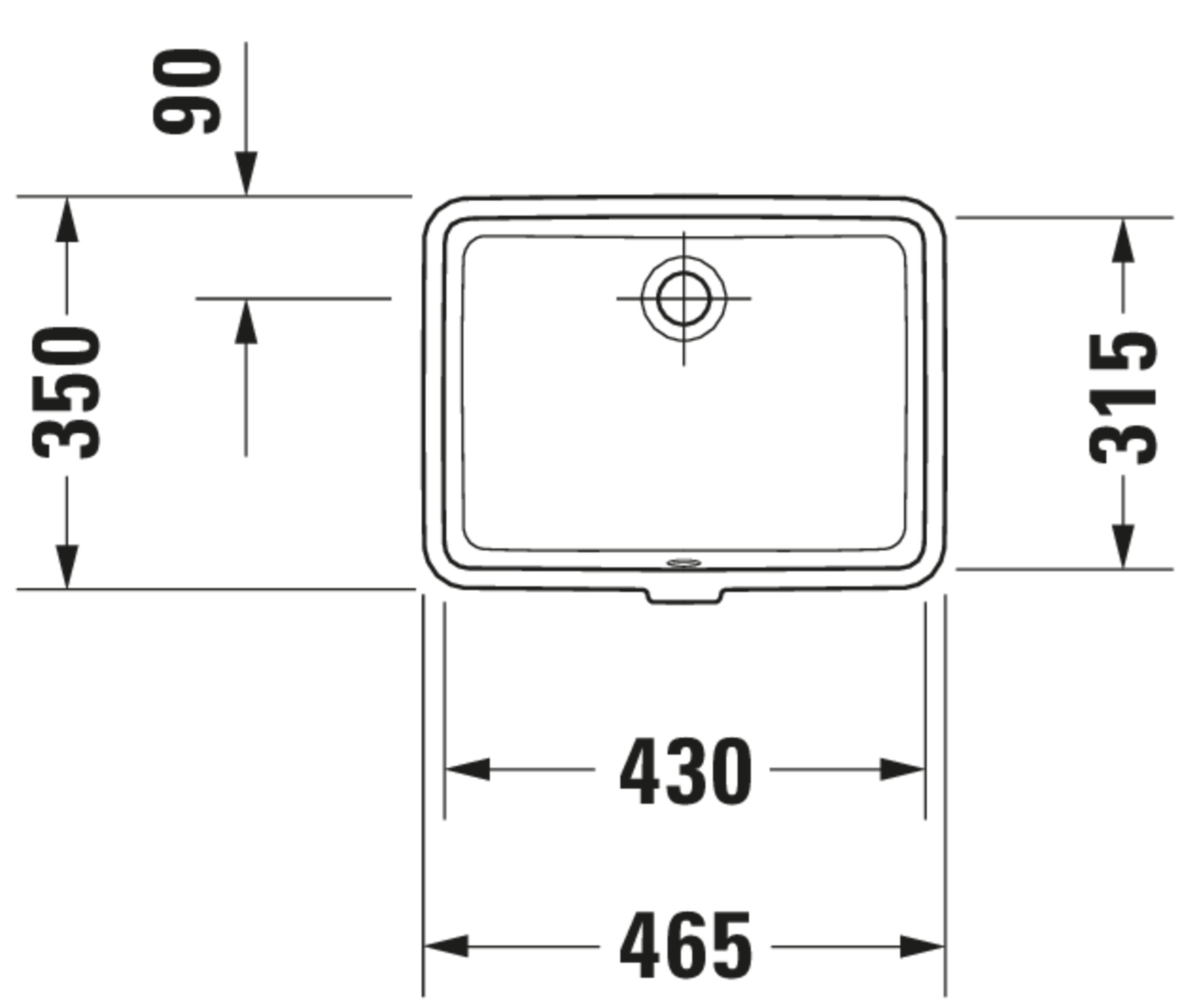 VERO #033043 inbouwwastafel 465mm wit zonder kraangat met overloop Duravit