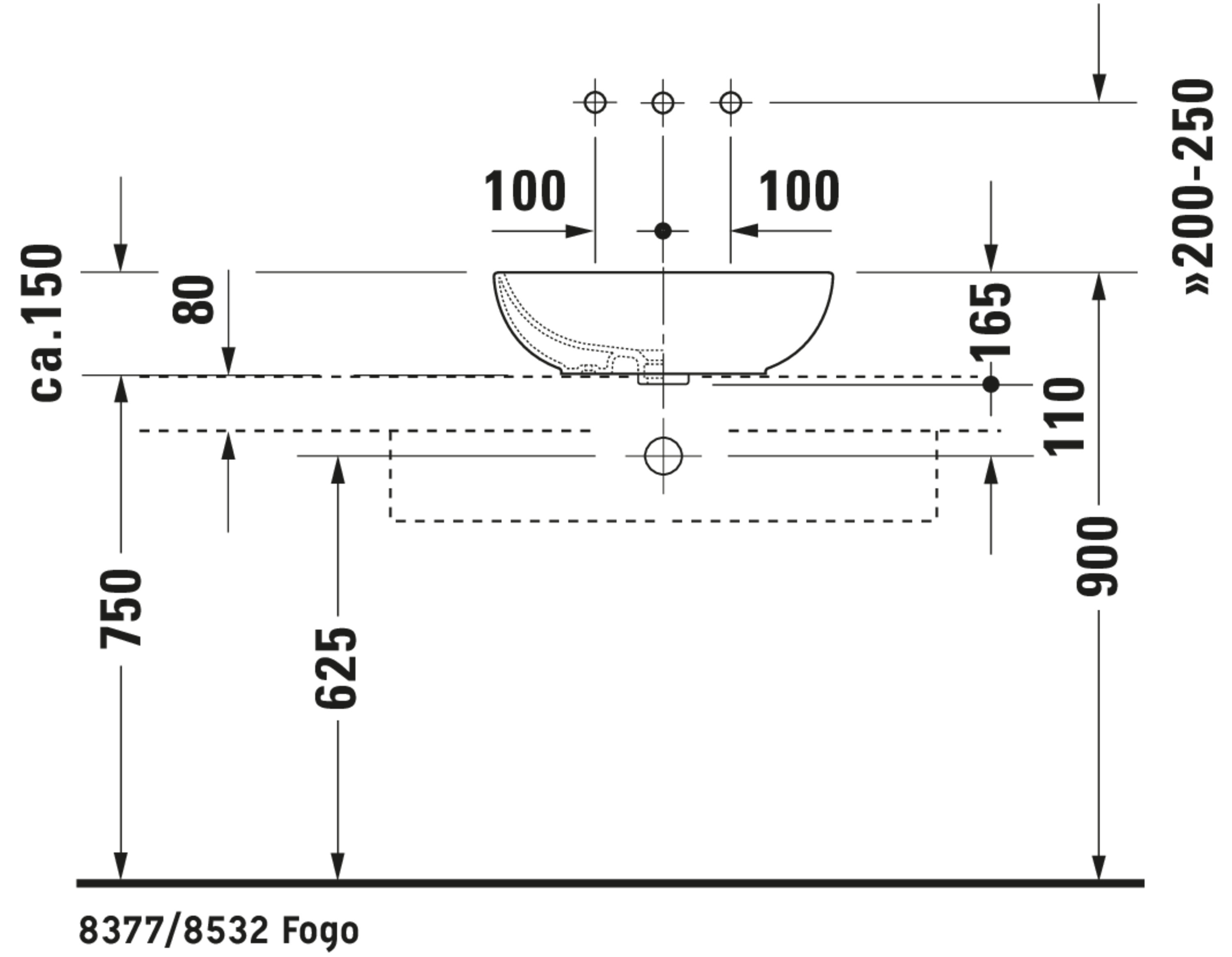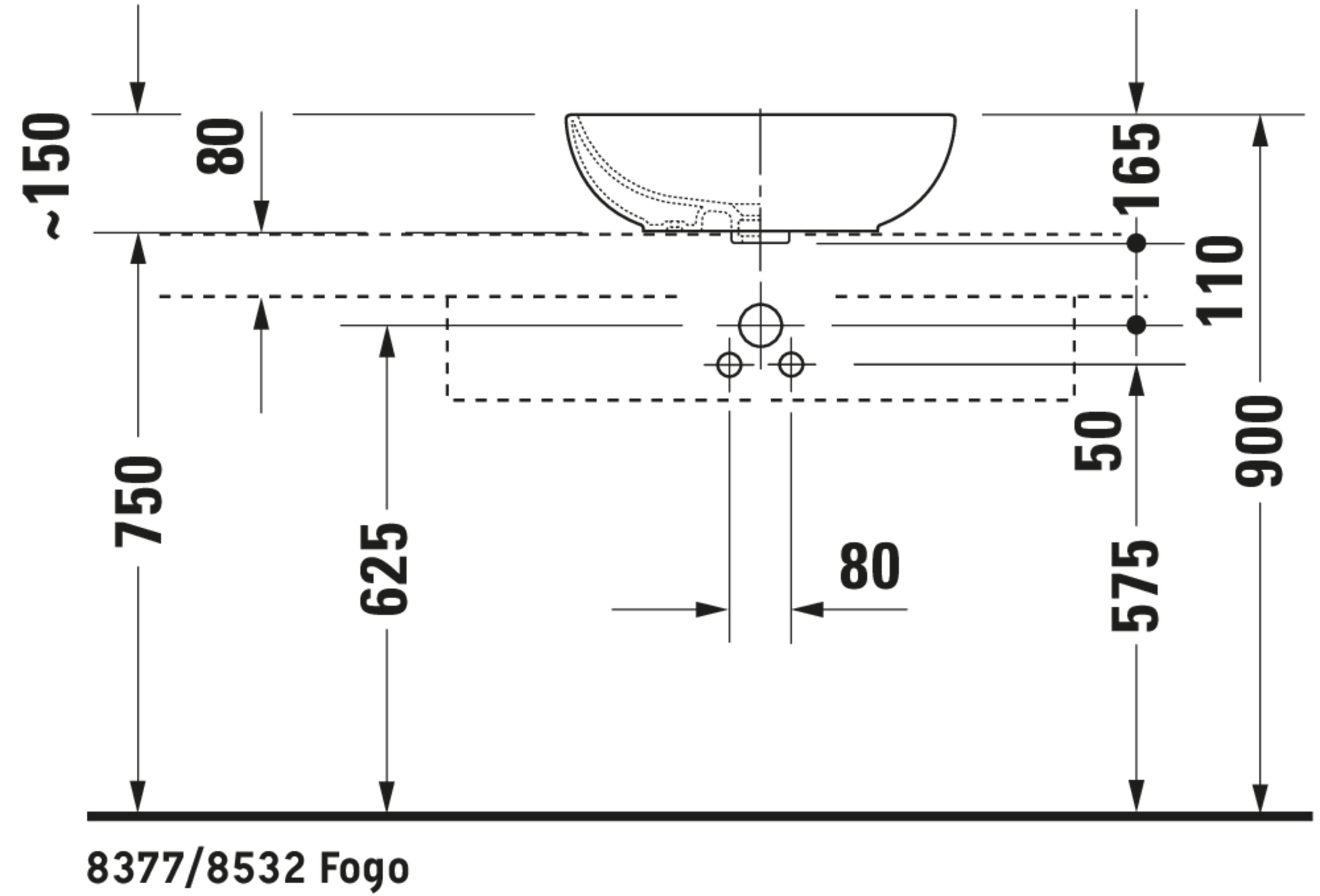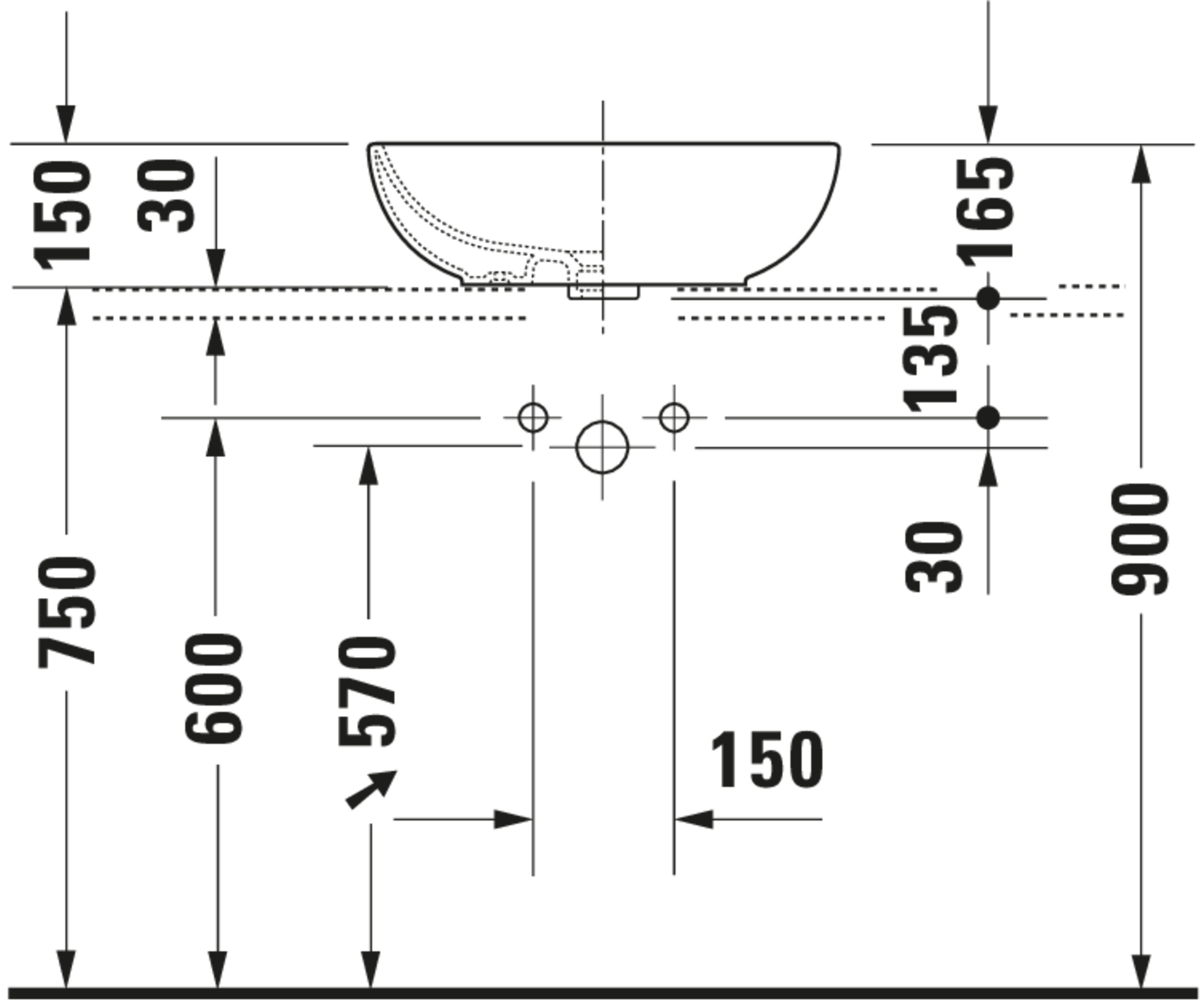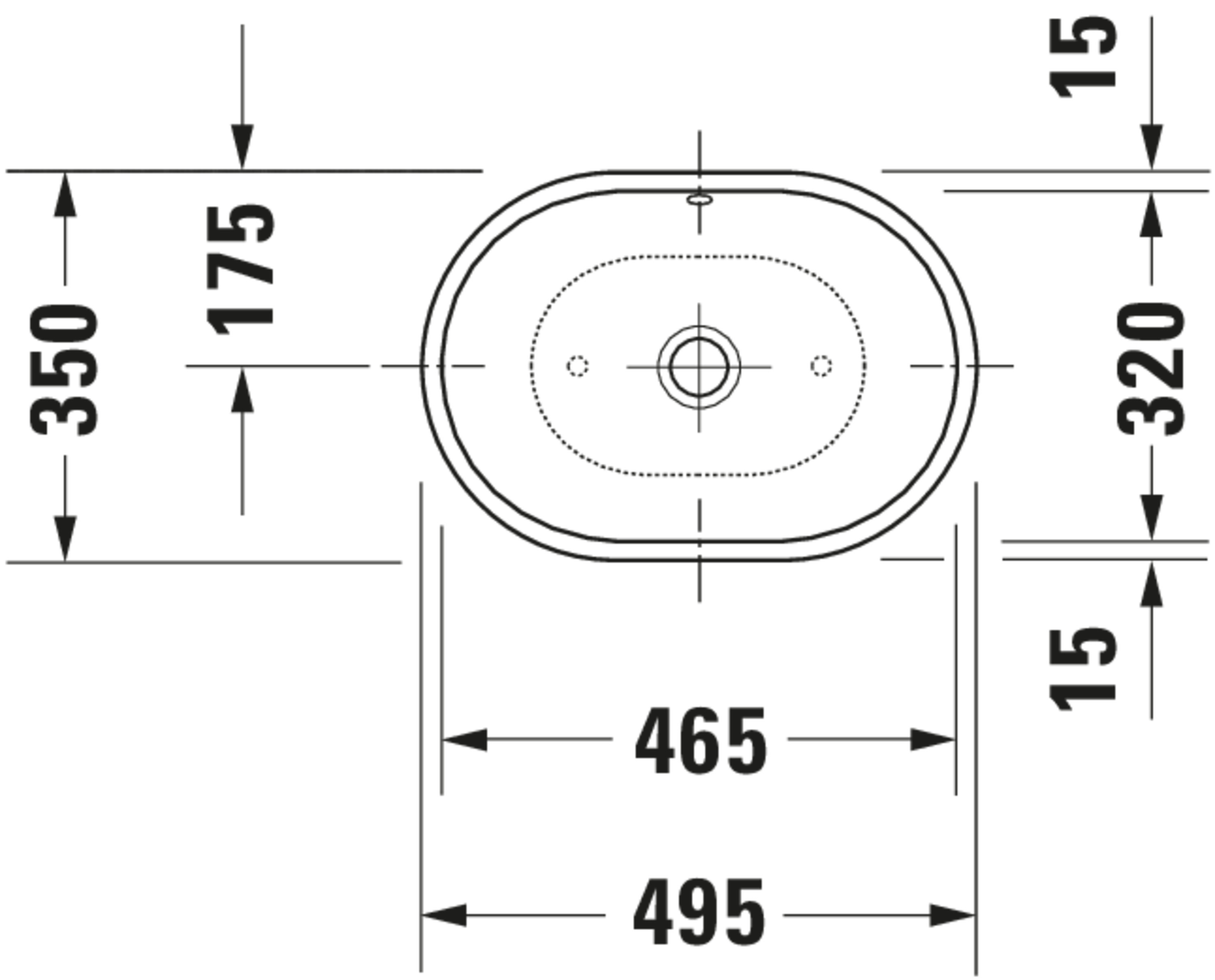 UNIVERSEEL #033550 opzetwastafel 495mm wit zonder kraangat met overloop Duravit