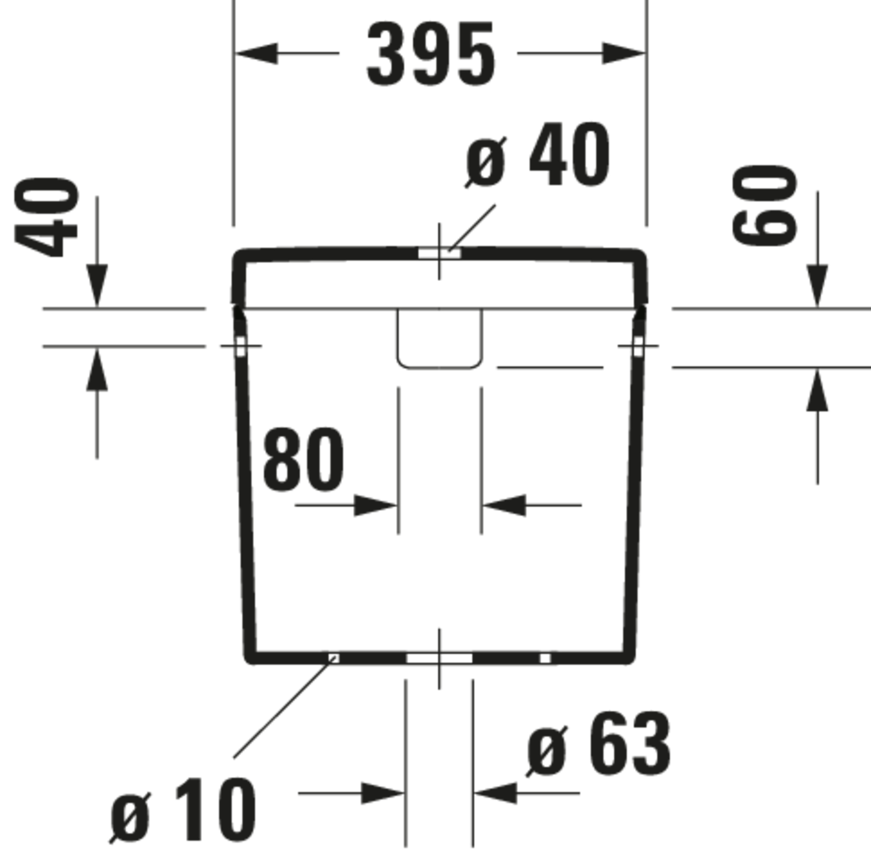 - Uitwendige buisdiameter spoelbocht reservoirzijde: 63 mm