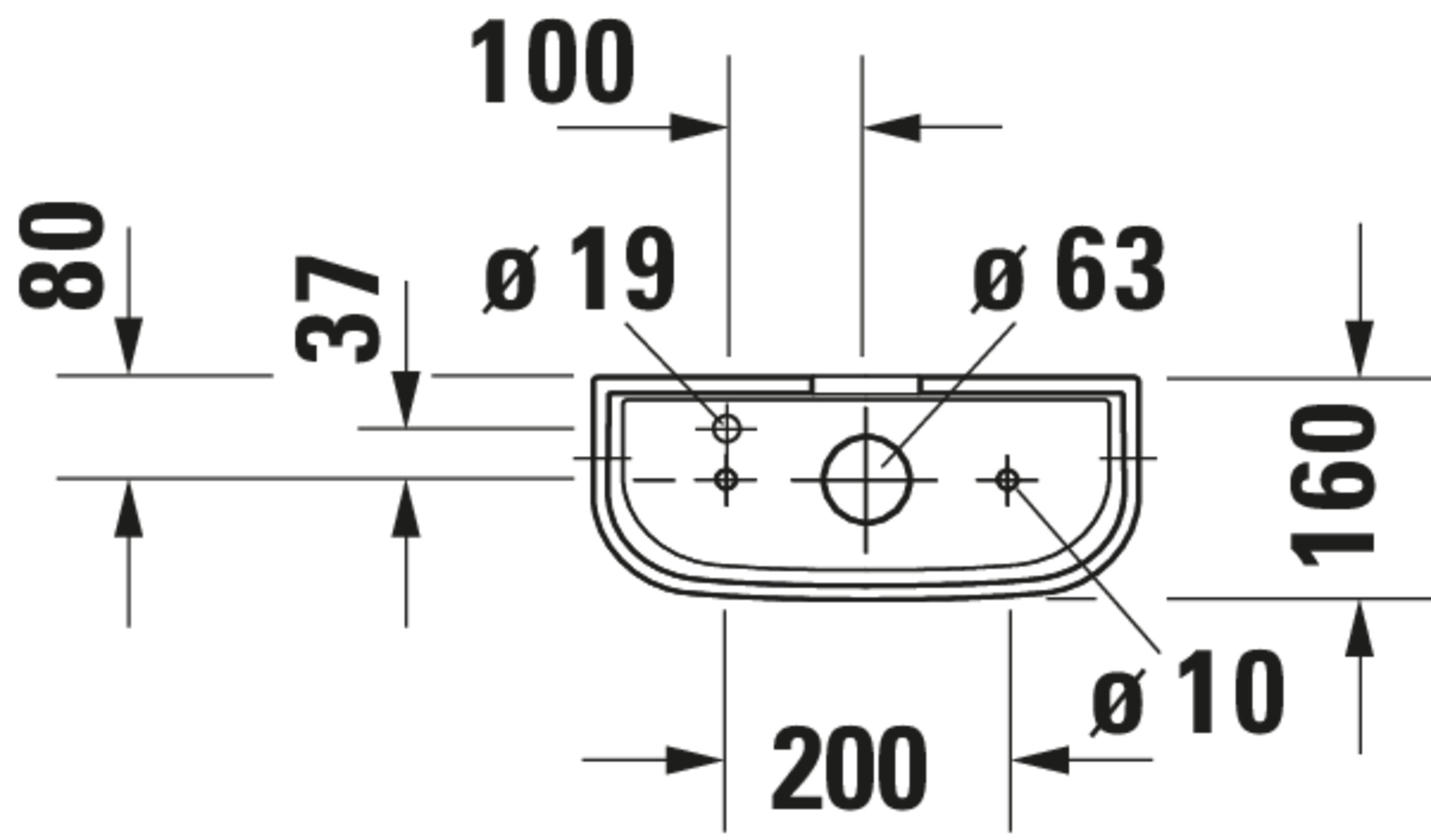 - Uitwendige buisdiameter spoelbocht reservoirzijde: 63 mm