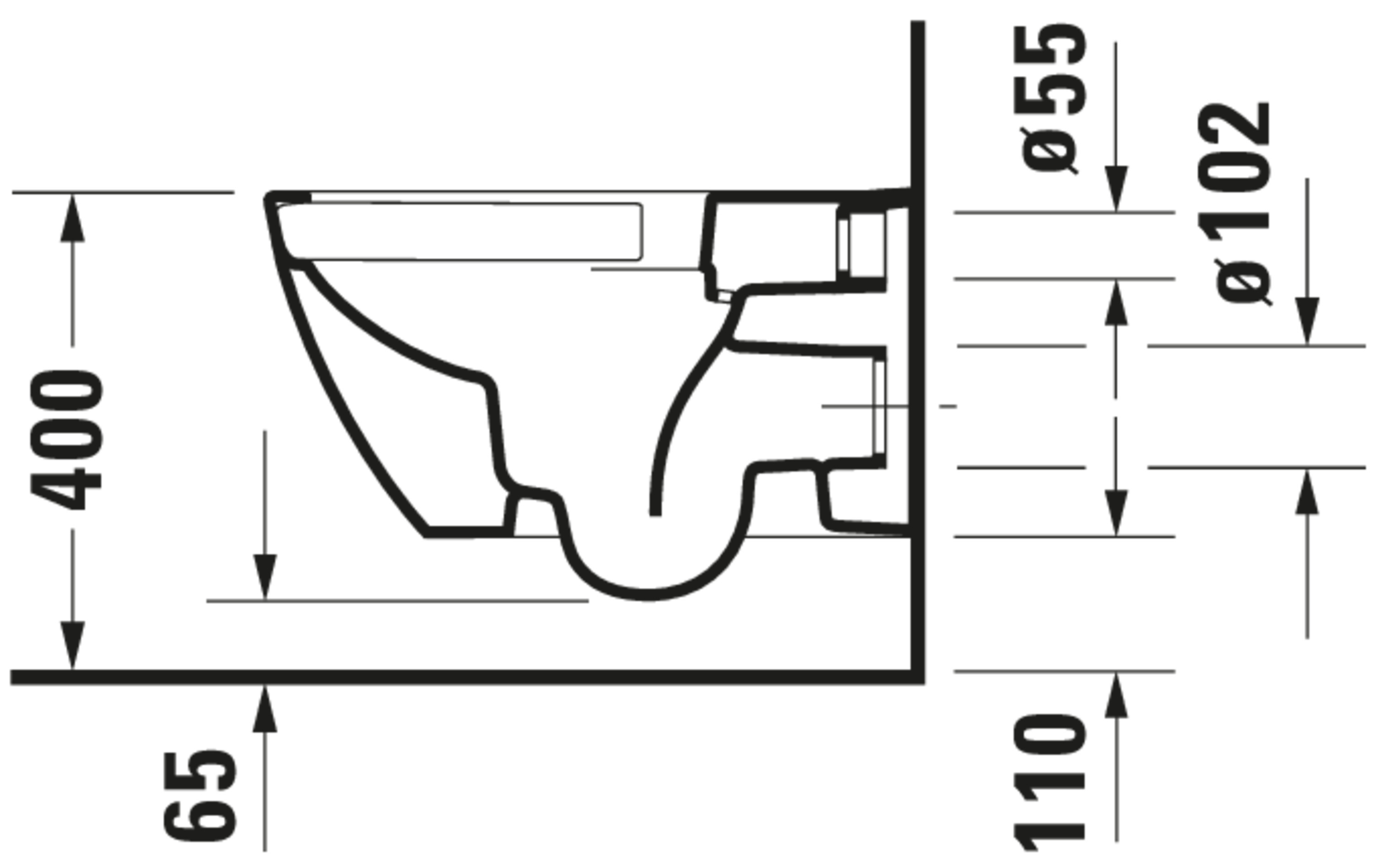 HAPPY D.2 #222209 wandcloset 540mm wit diepspoel rimless hygieneglaze durafix 3ltr./4,5ltr. (excl. zitting) Duravit