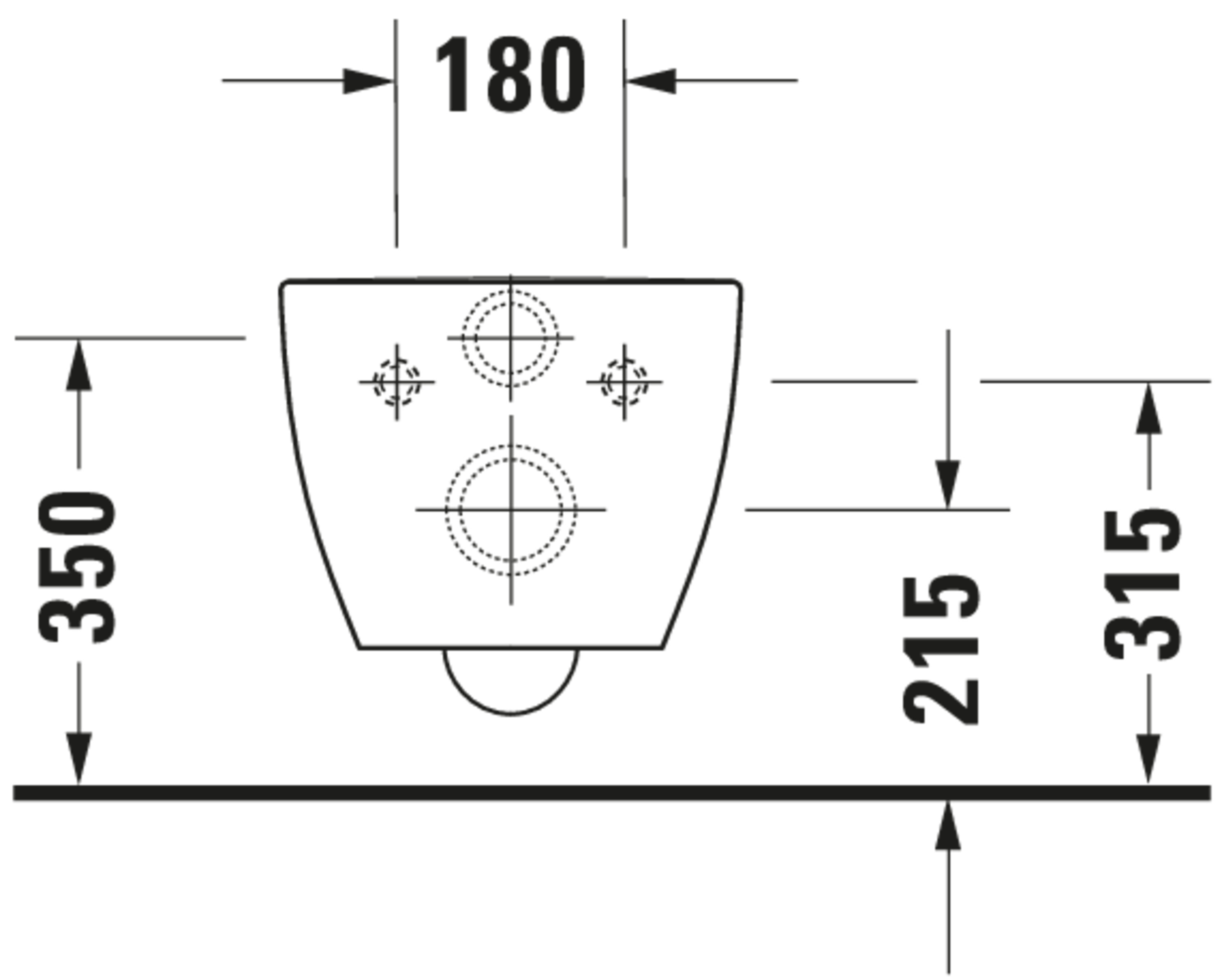 - Hartmaat bevestiging wandcloset: 180 mm