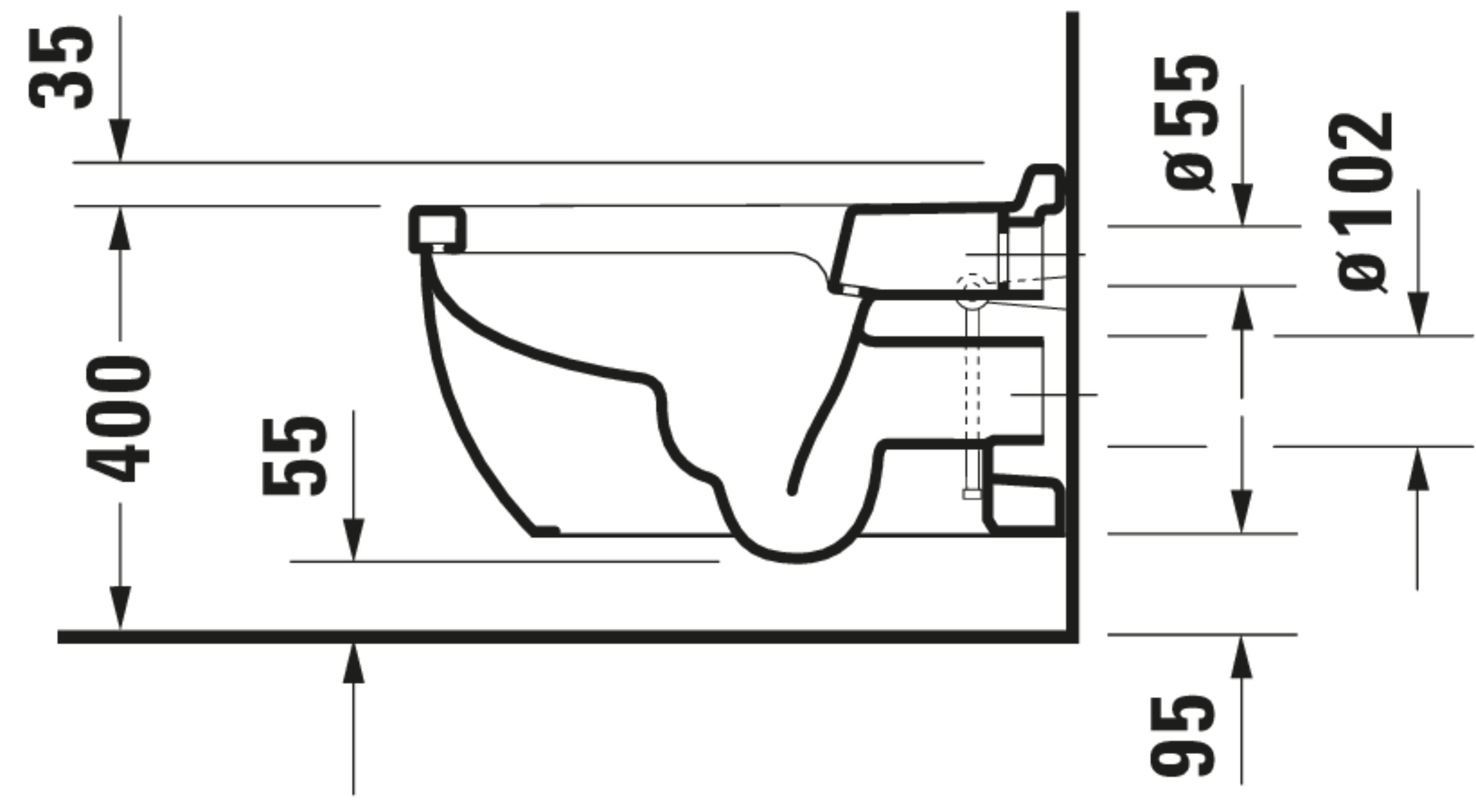 STARCK 3 #222609 wandcloset 620mm wit diepspoel gesloten durafix 3ltr./6ltr. (excl. zitting) Duravit