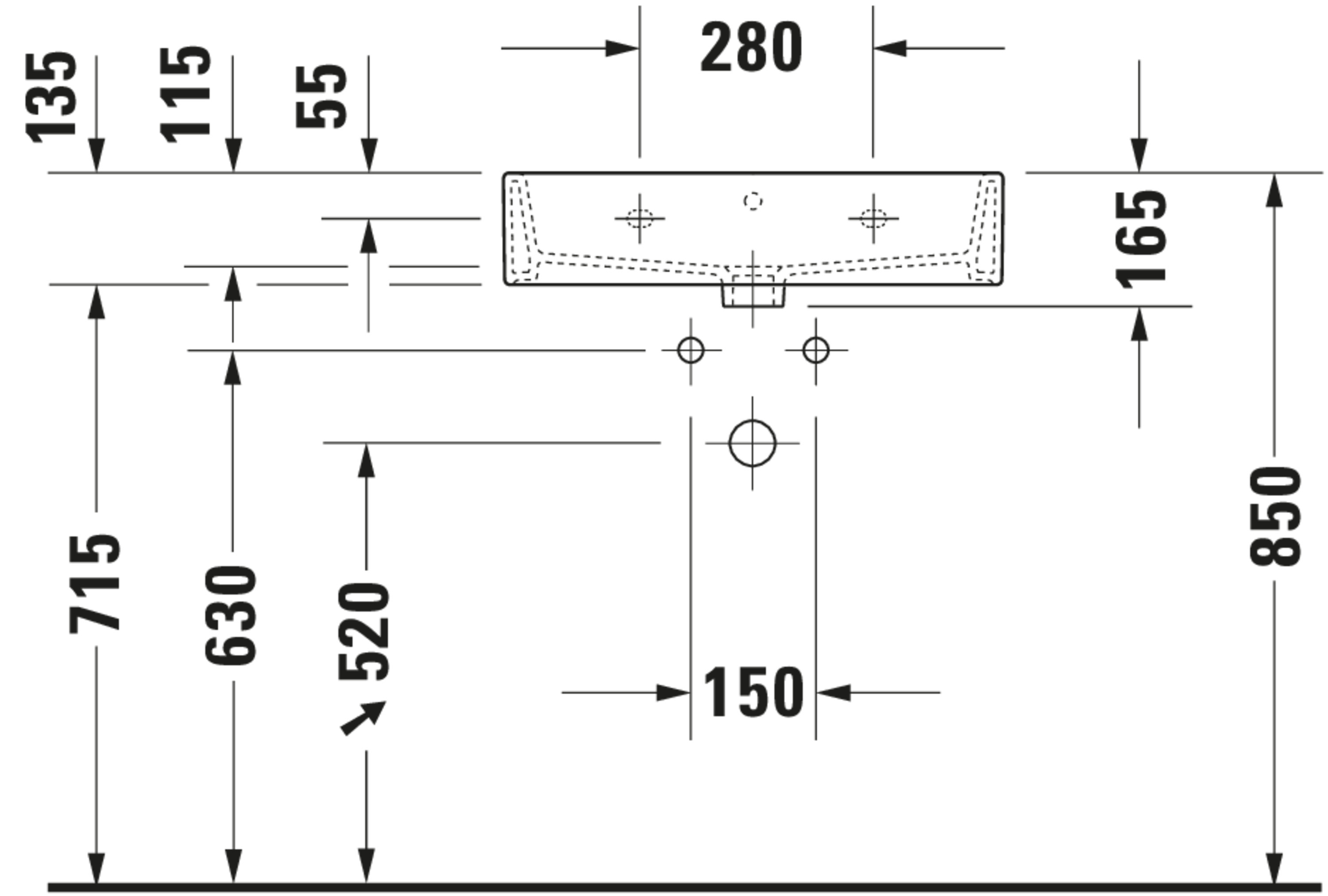 VERO AIR #235060 wastafel 600mm wit zonder kraangat met overloop Duravit
