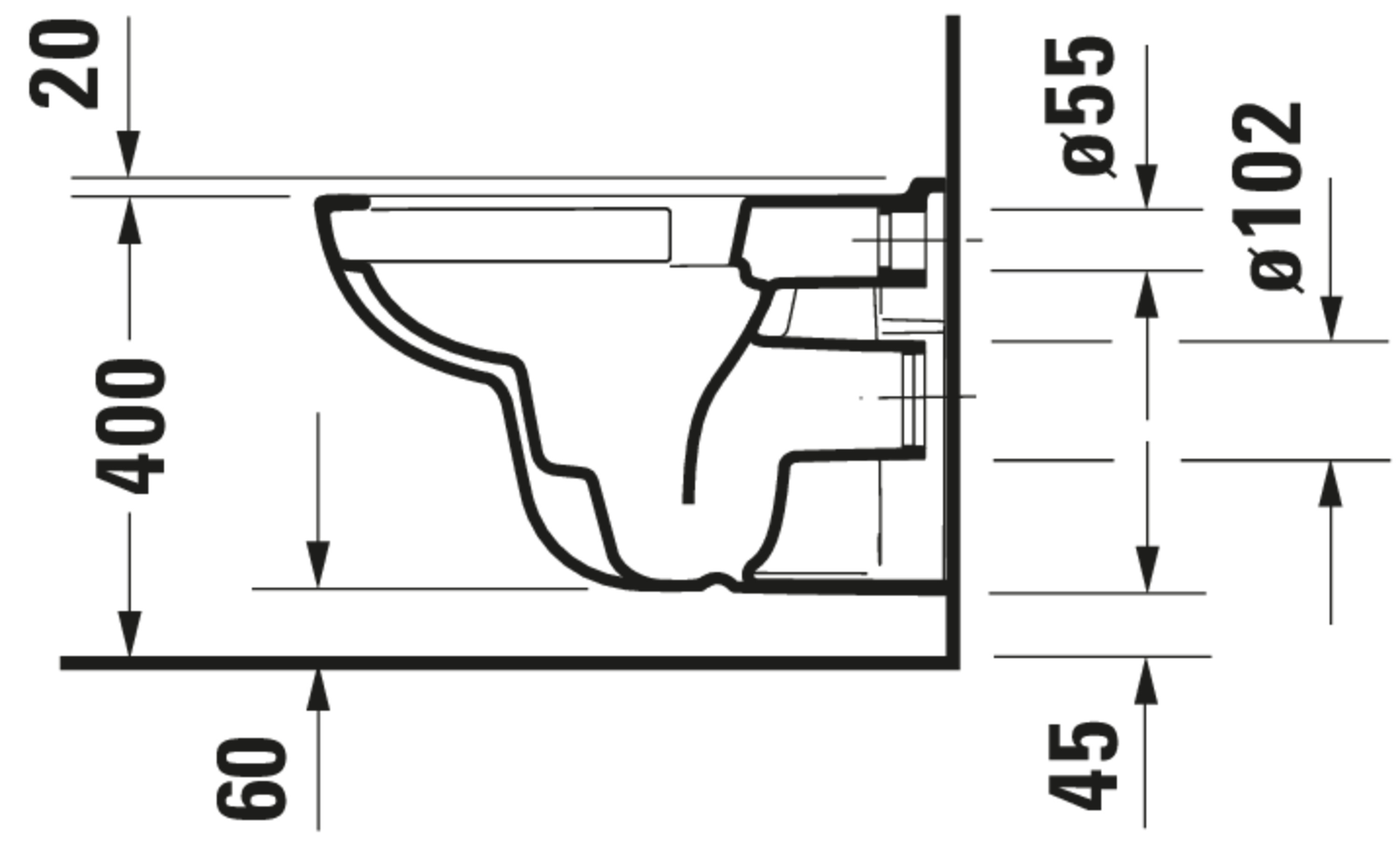 D-CODE #257009 wandcloset 545mm wit diepspoel rimless 3ltr./4,5ltr. (excl. zitting) Duravit