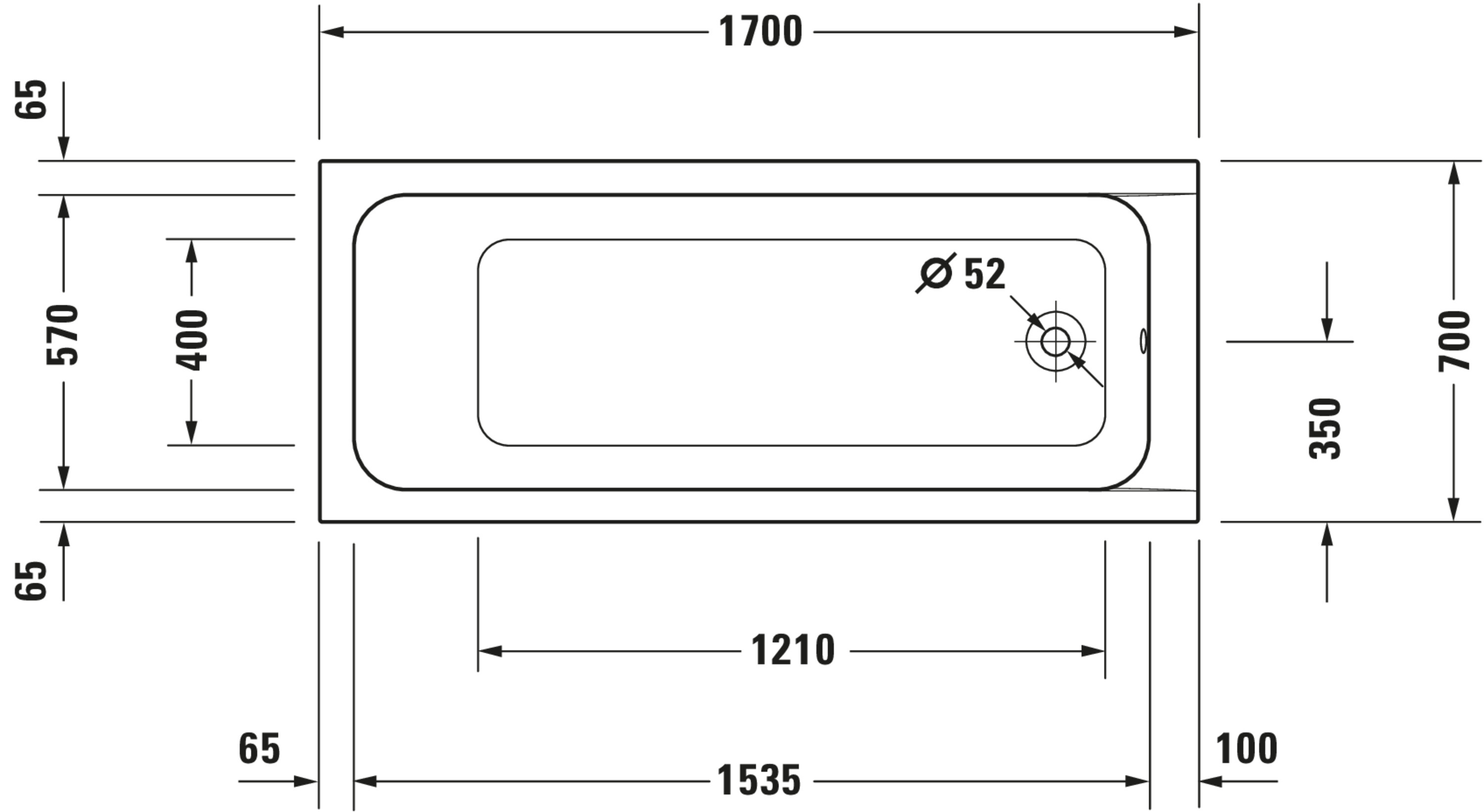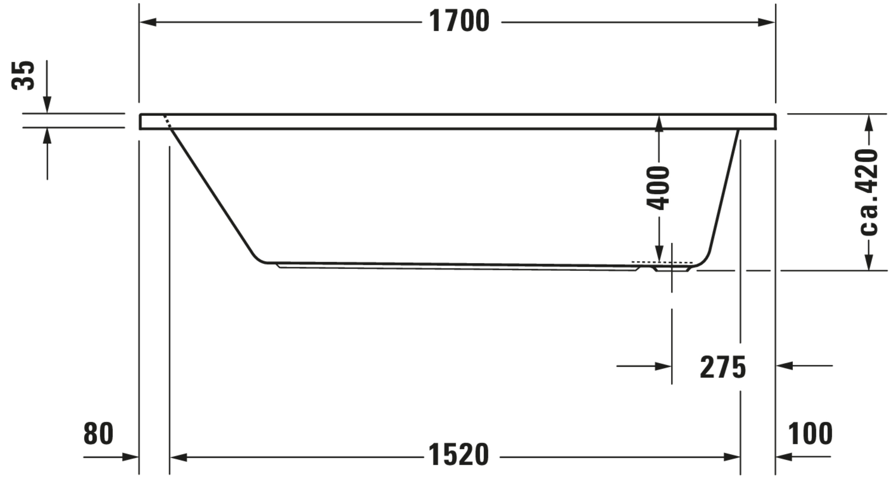 D-Code 4-H Ligbad 1700x700x420mm afvoer voeteneinde Duravit