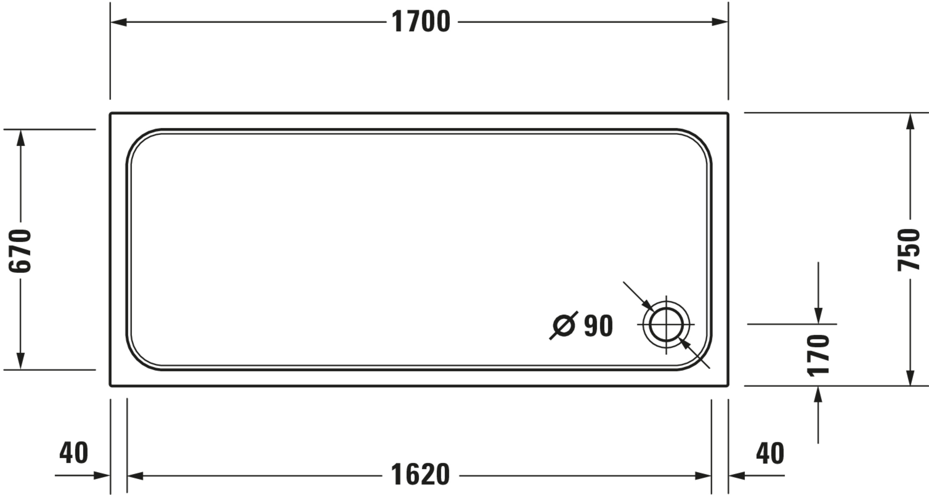 D-Code 4-H Douchebak 1700x750x85mm Antislip Duravit