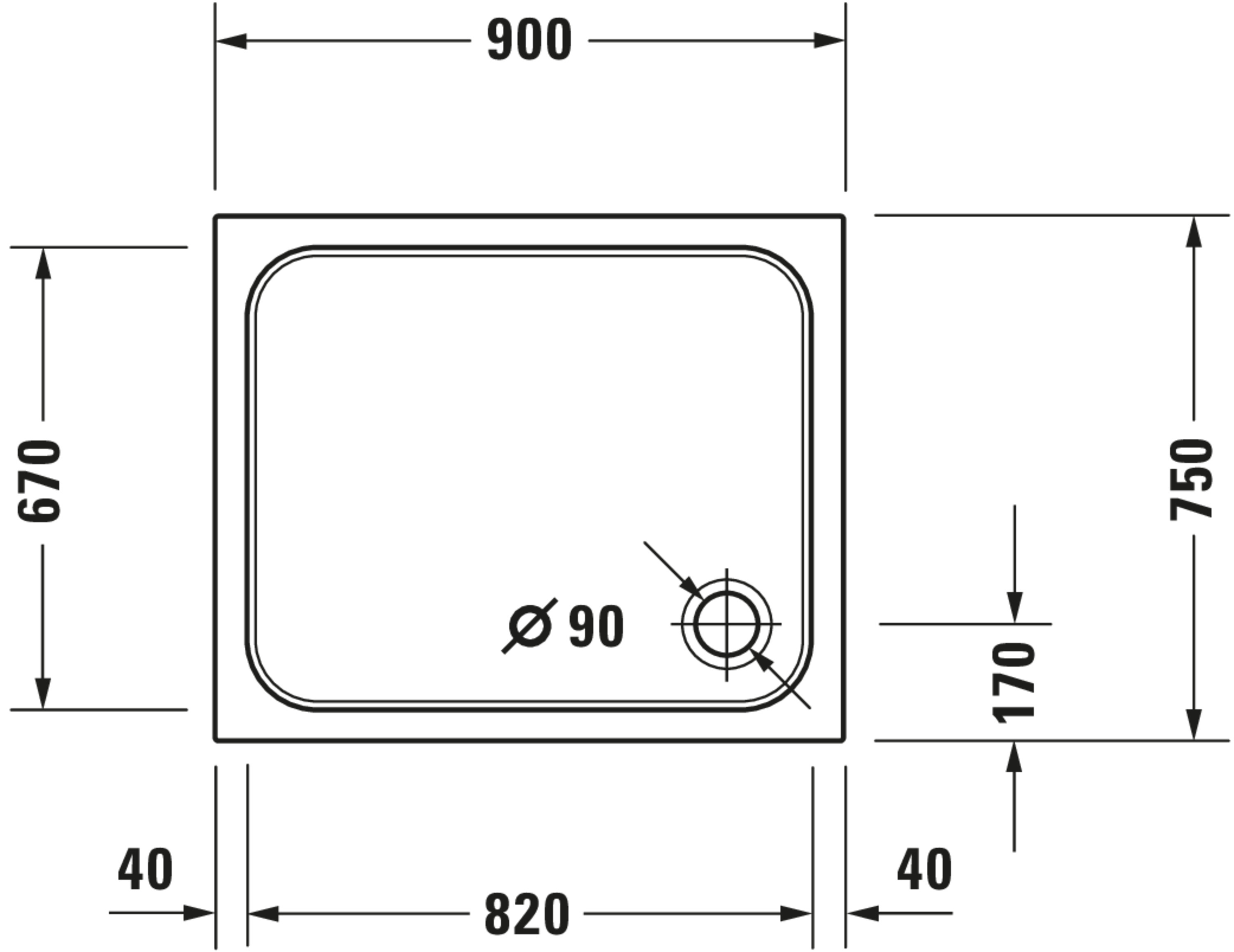 D-Code 4-H Douchebak 900x750x85mm Duravit