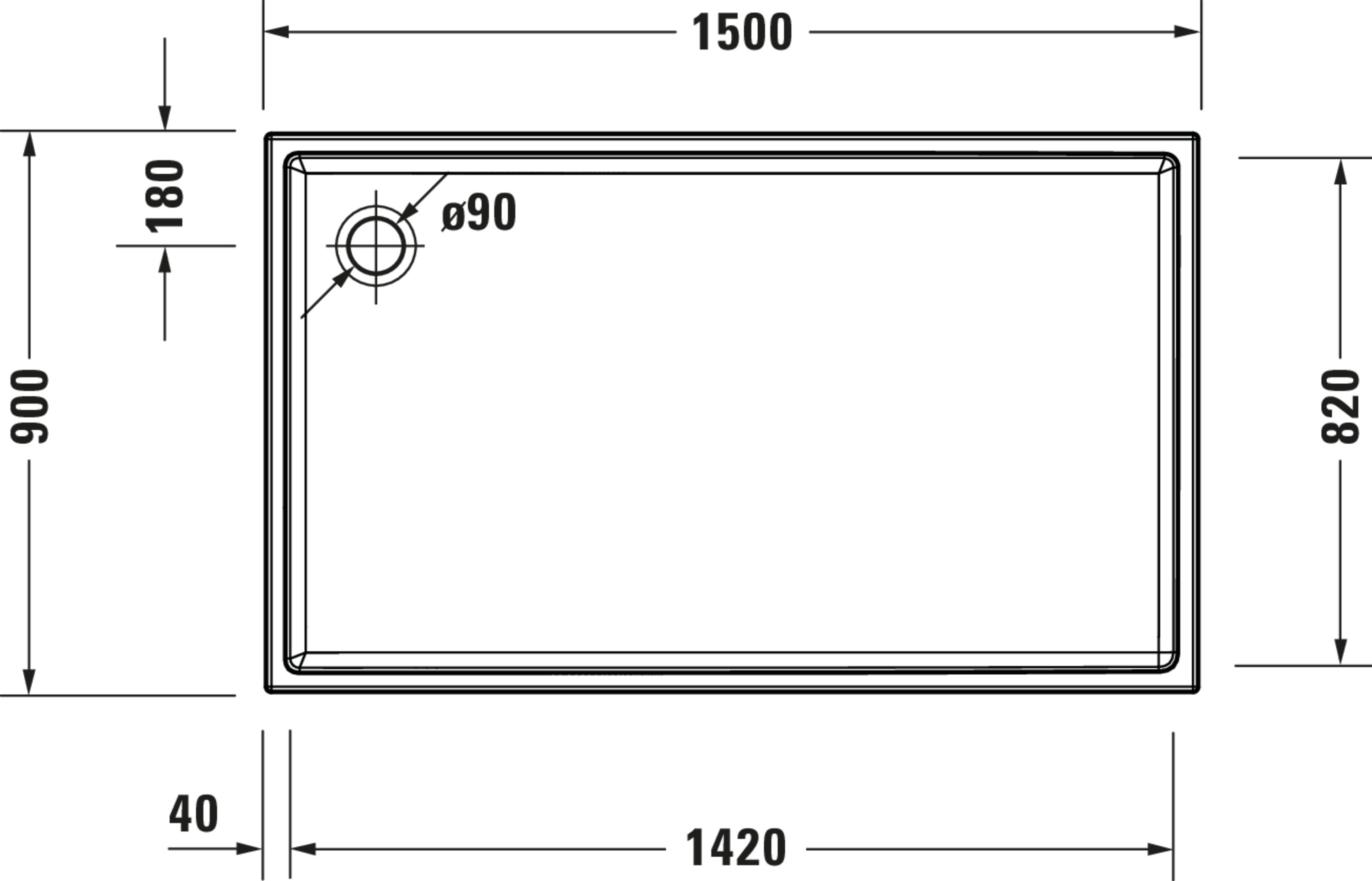 Douchebak Starck Slimline,1500x90 0mm, wit, rechthoek, Antis Duravit