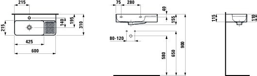 Wastafel met overloop semi nat gedeelte rechts z. kr.gat H8152854001091 Laufen