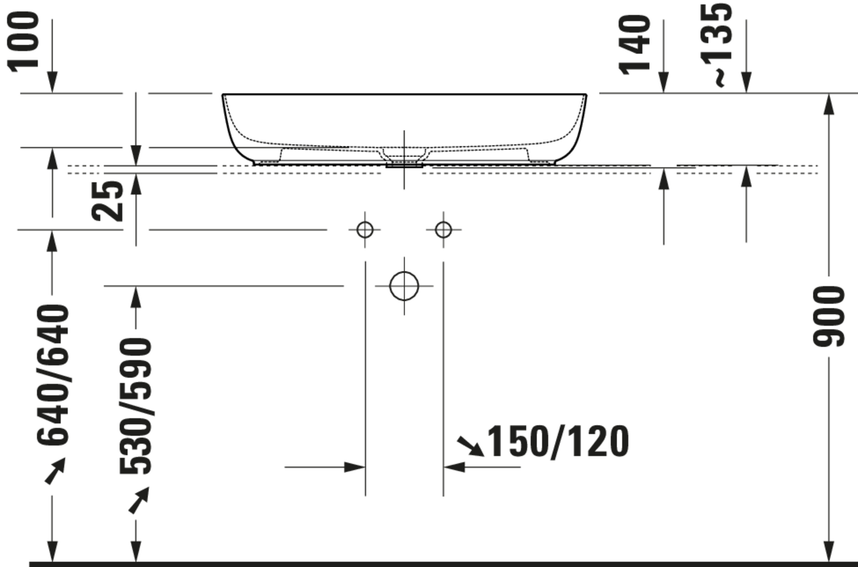Opzetwastafel 700mm LUV geslepen zonder overloop zonder kraanvlak wit Duravit