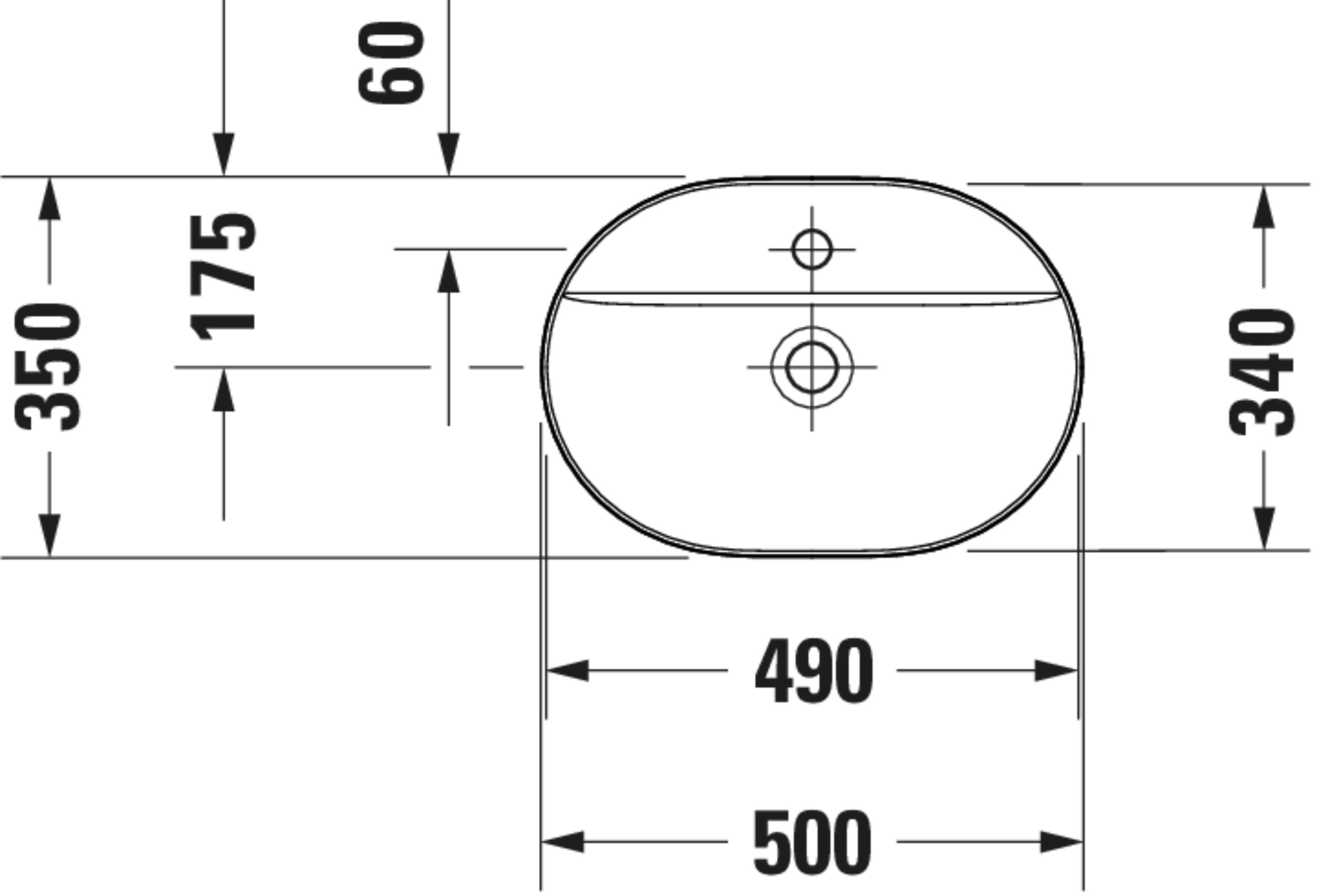 Opzetwastafel 500mm LUV geslepen zonder overloop met kraanvlak 1 kraangat wit Duravit