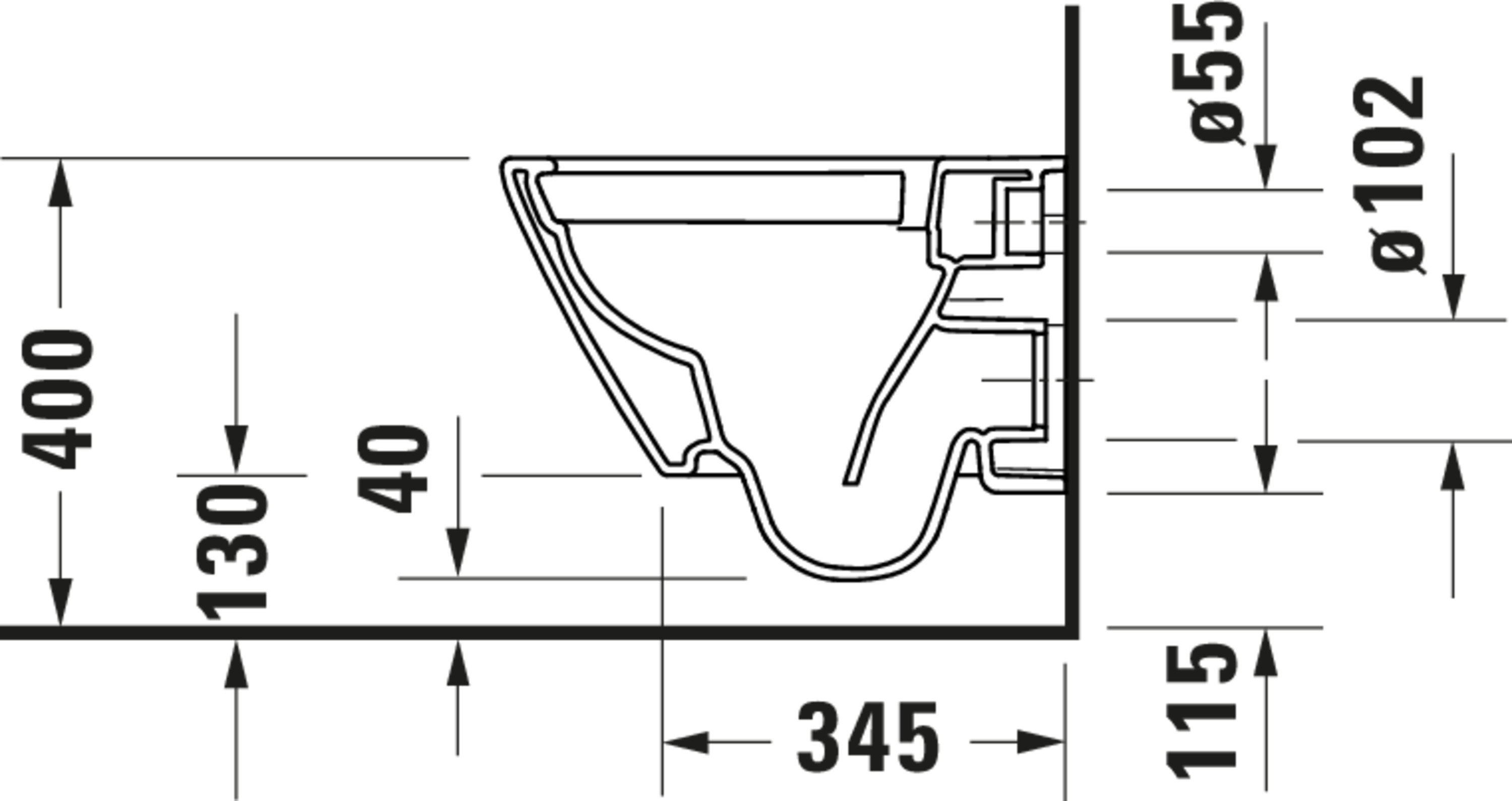D-NEO #258709 wandcloset verkort 480mm wit diepspoel rimless 4,5ltr. (excl. zitting) Duravit