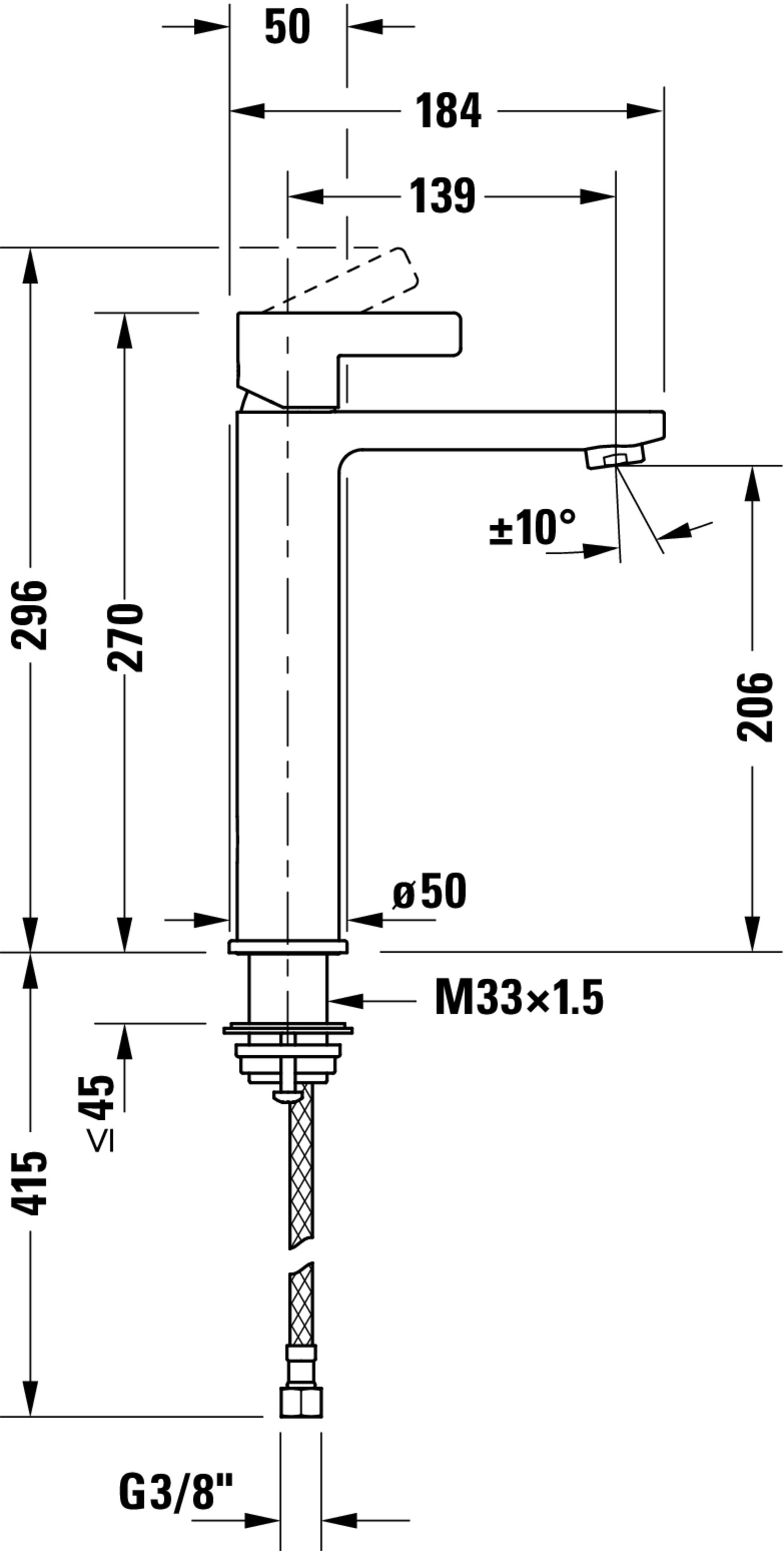 - Opbouwhoogte onderkant kraanmondstuk: 0 mm