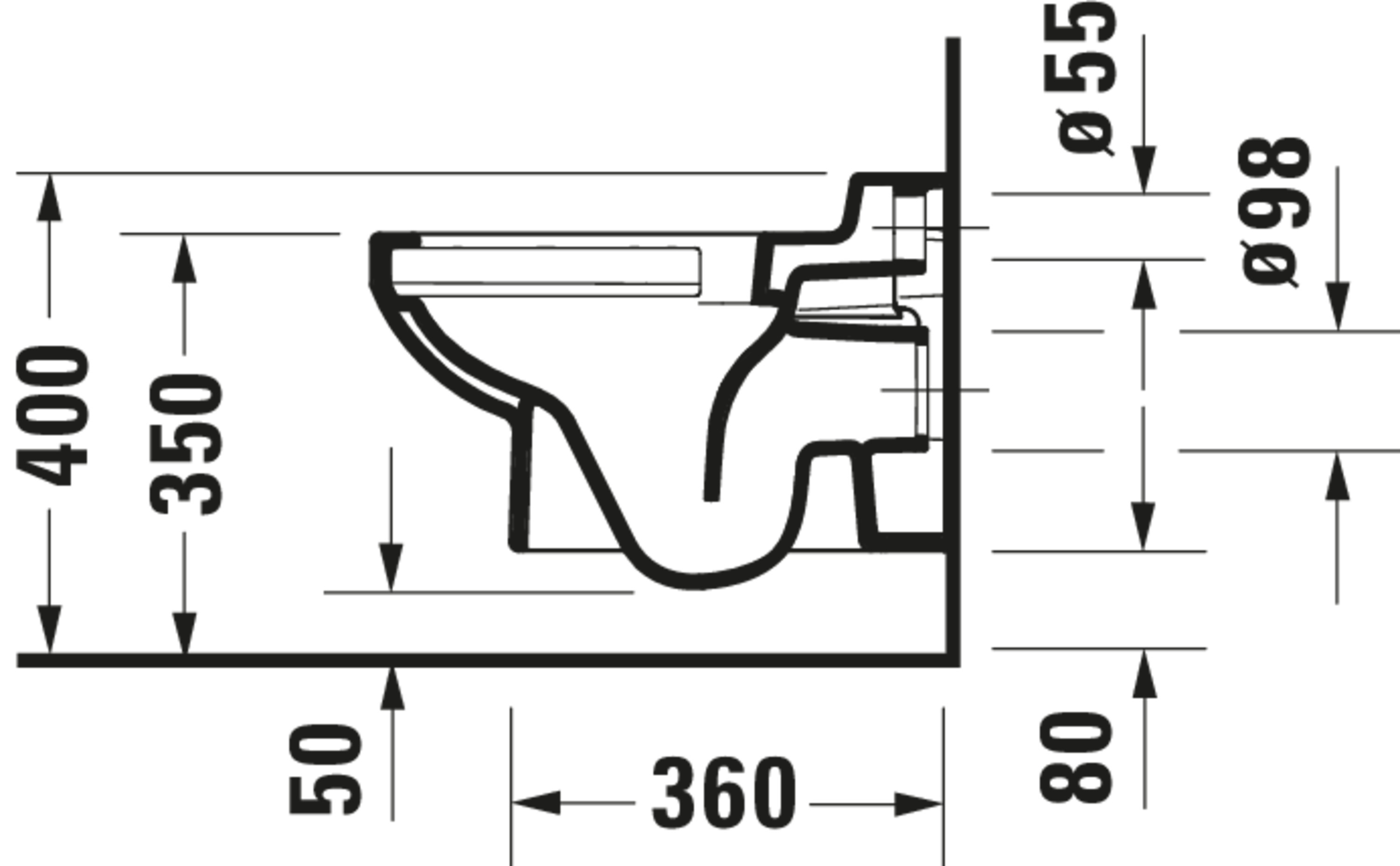 DURAVIT NO.1 #257409 wandcloset verkort 480mm wit diepspoel rimless 3ltr./4,5ltr. (excl. zitting) Duravit