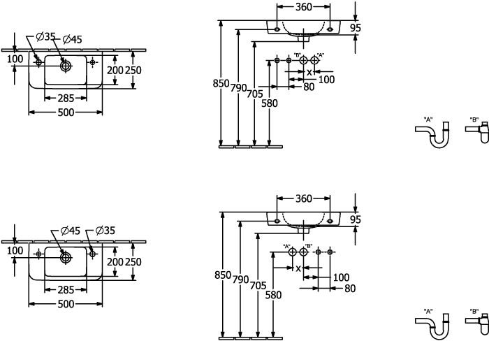 O.novo Fontein Compact 500x250mm 4342L501 Villeroy & Boch