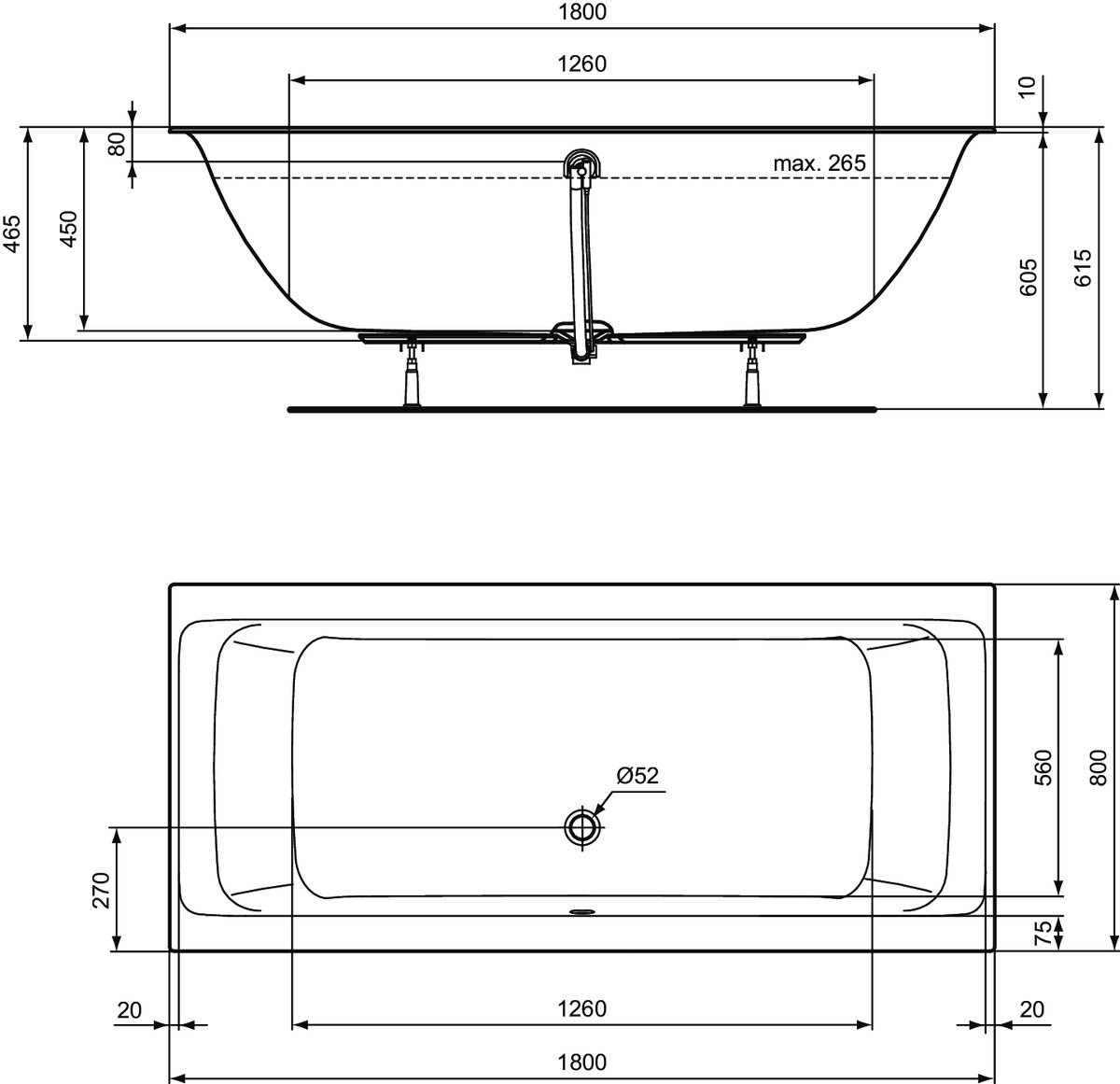 connect air duobad 180x80cm slim rim silk white R0296V1 Ideal Standard