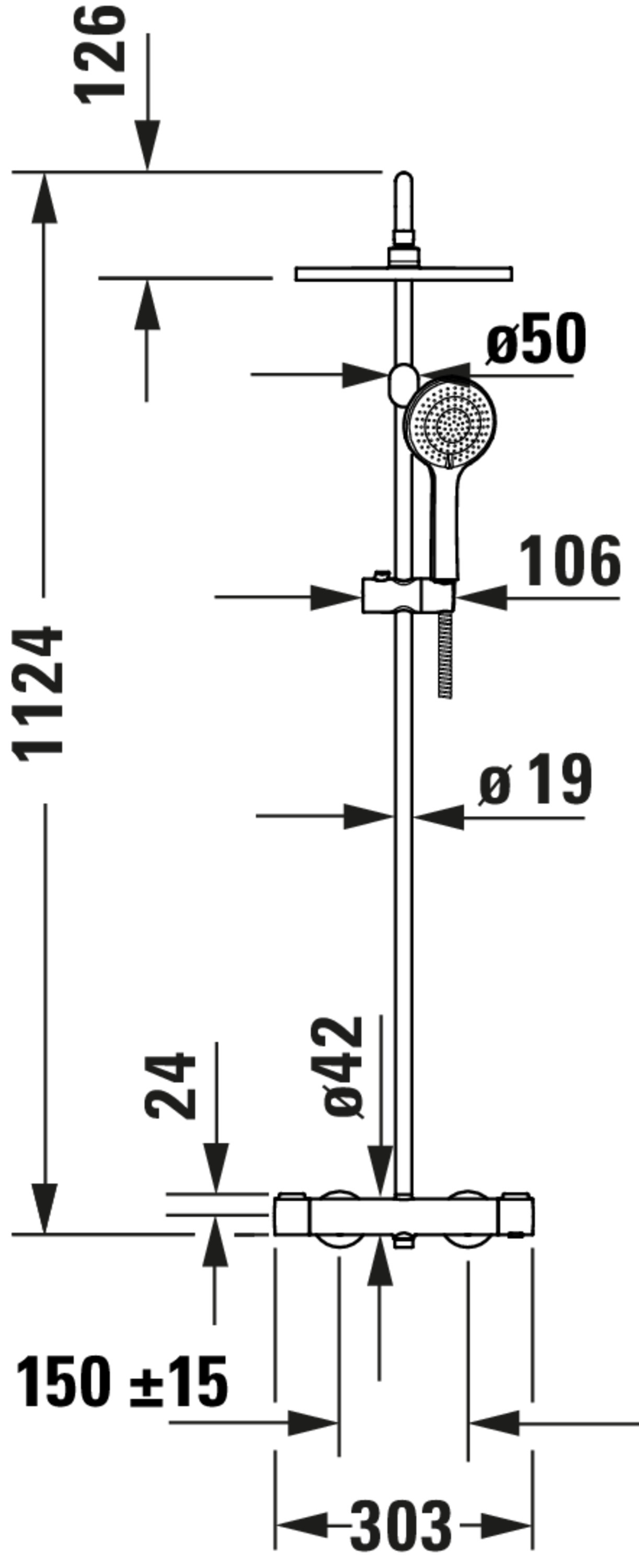 Showerpipe douchesysteem 1000 hoh 150mm hoofddouche ø250mm zwart mat Duravit