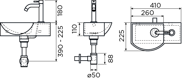 - Met afvoerplug en geïntegreerde overstort: Nee