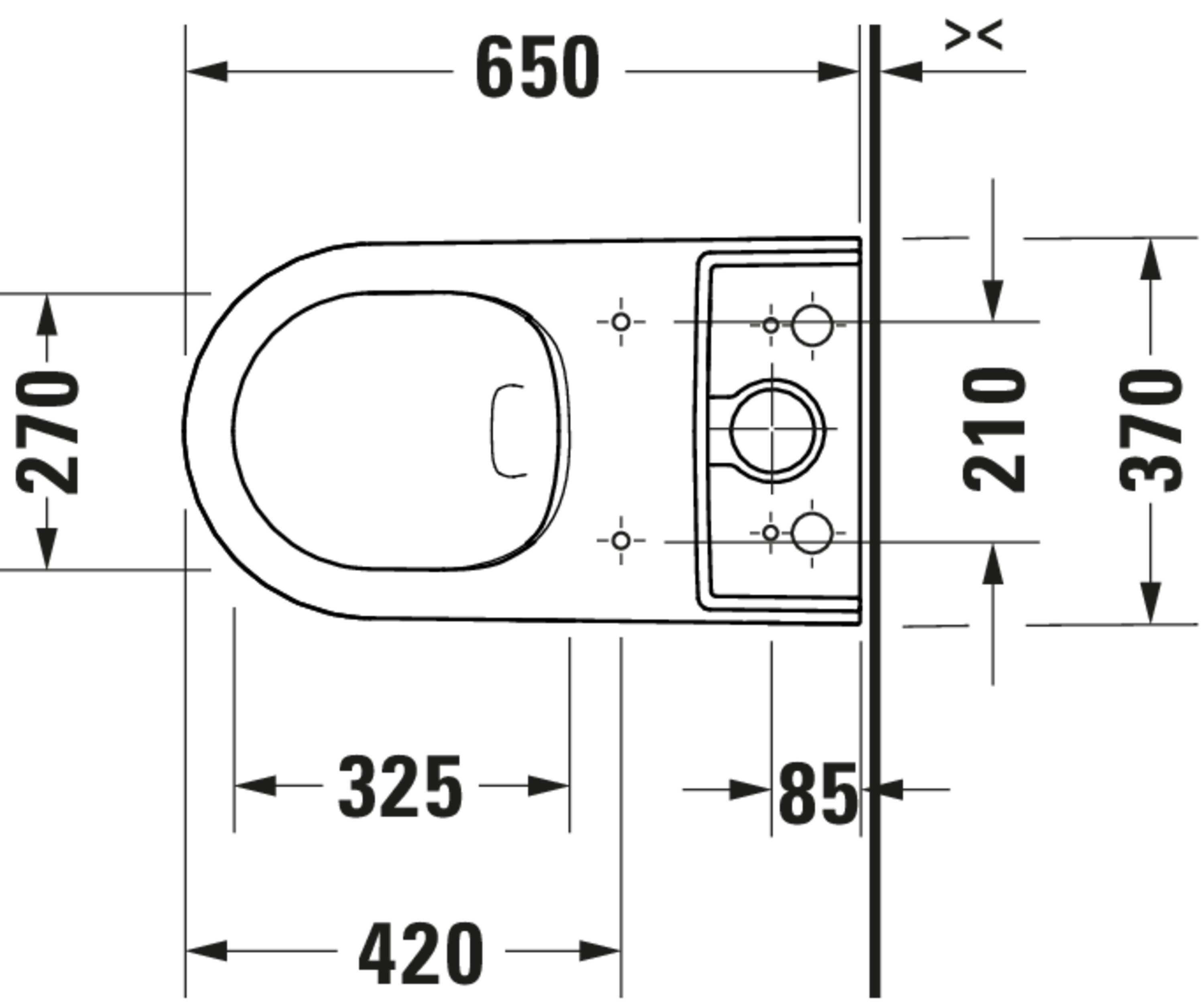 Staand closet tbv duoblok wit hoogglans 650mm ME by Starck Duravit