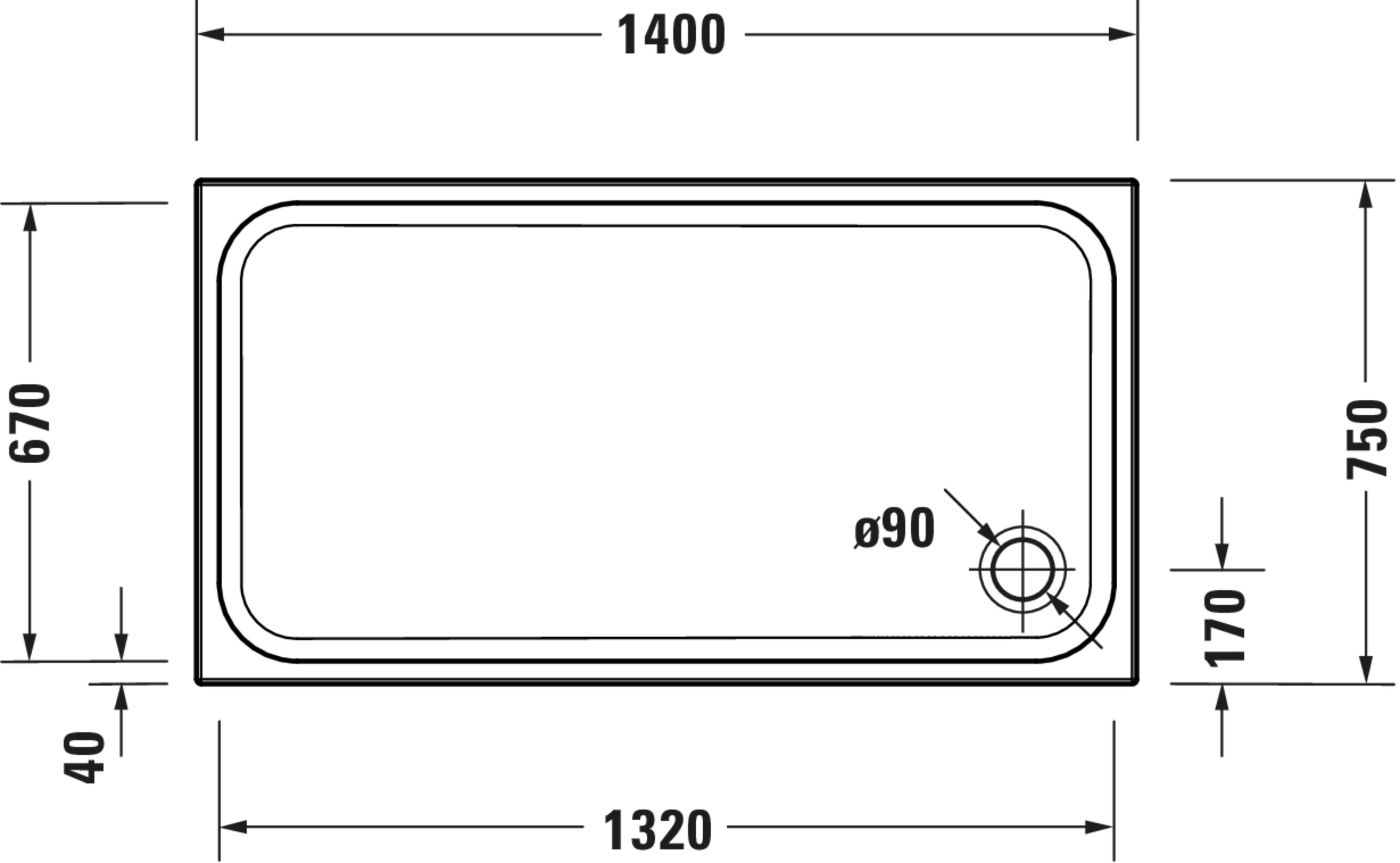 D-Code Douchebak Wit 1400x750x85mm 720258000000000 Duravit