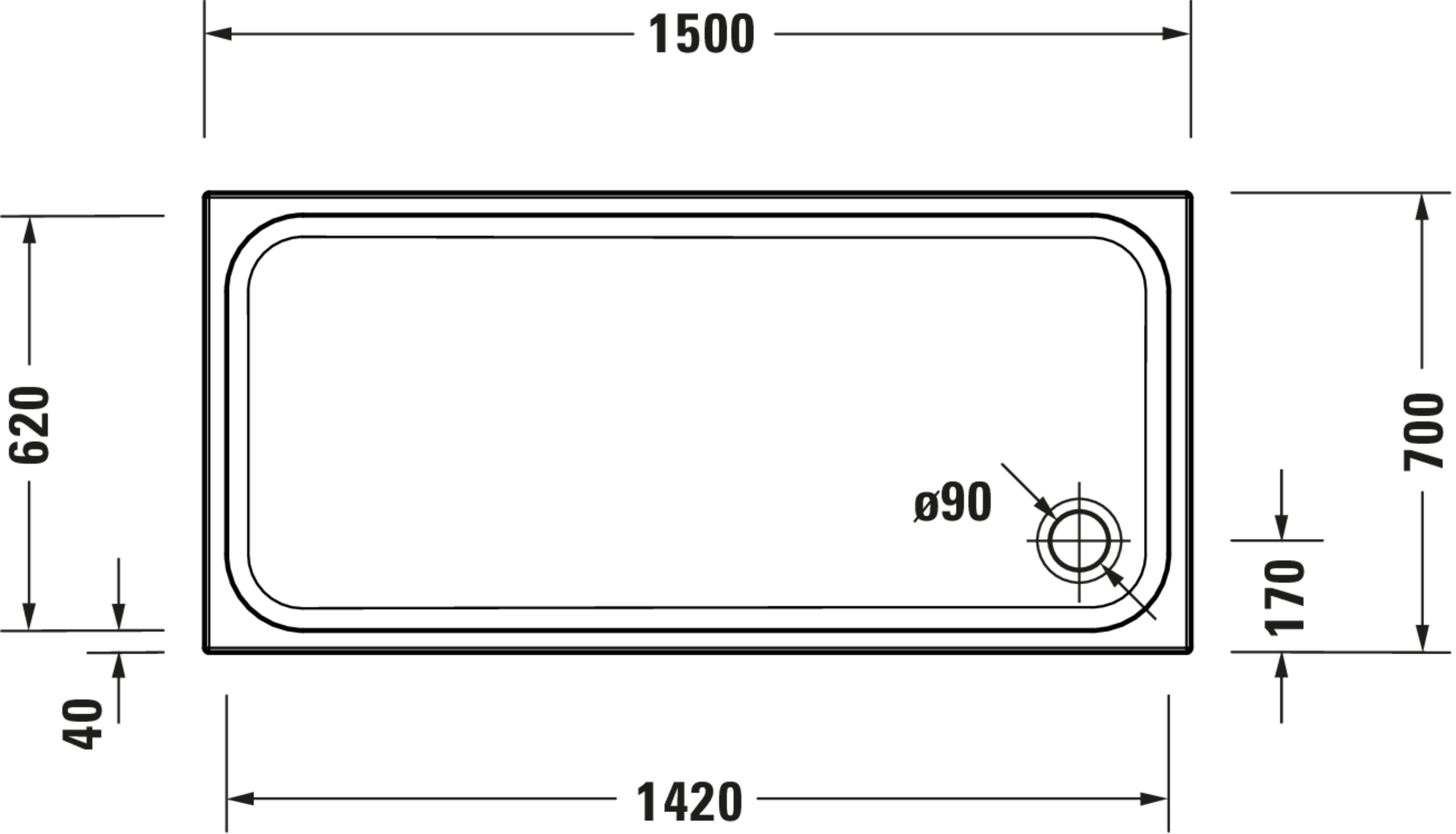 D-Code Douchebak Wit 1500x700x85mm 720261000000001 Duravit