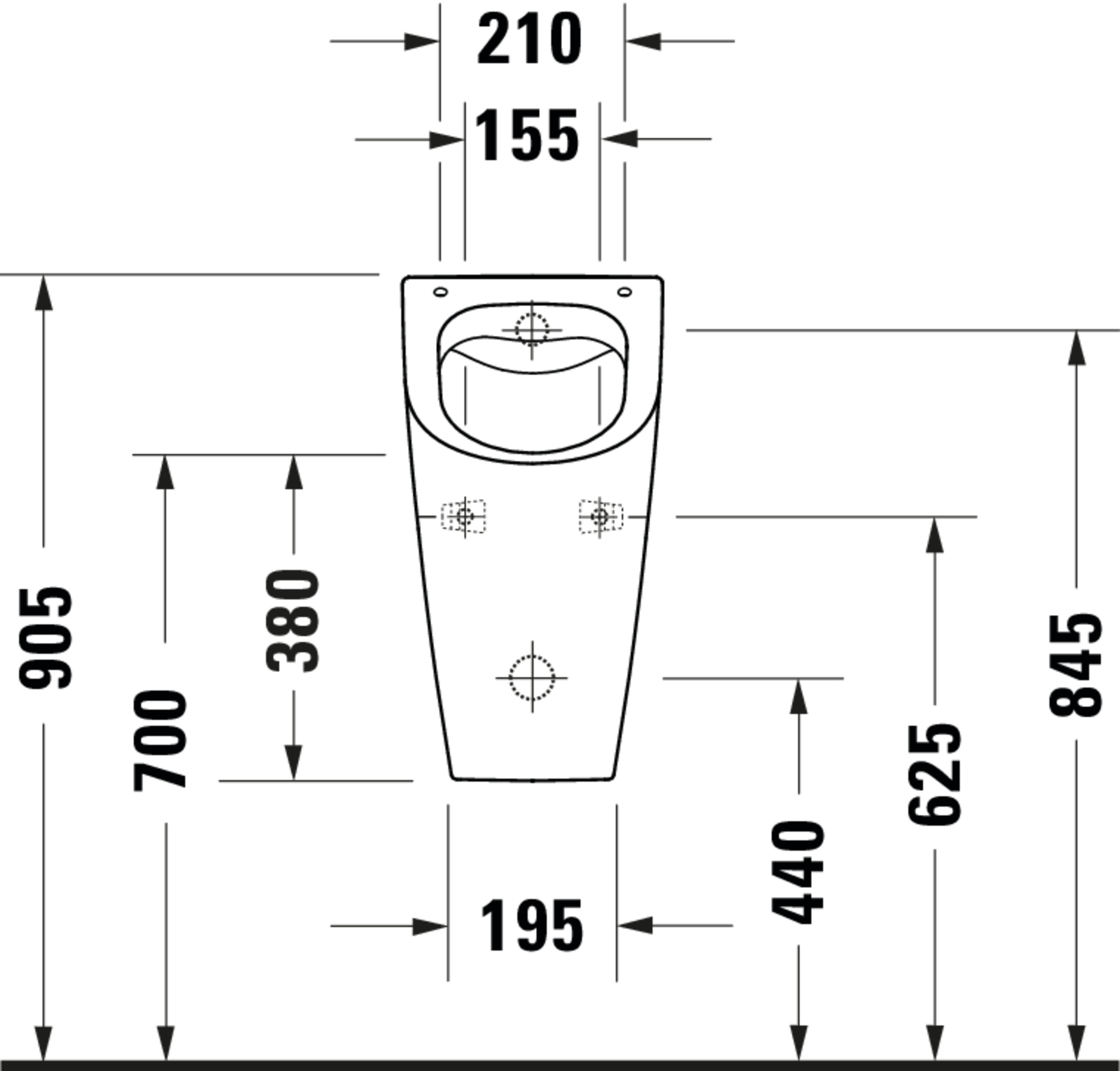 ME by Starck #281230 urinoir achterinlaat bi. wit hoogglans / bu. wit mat met dekselgaten (excl. deksel) Duravit