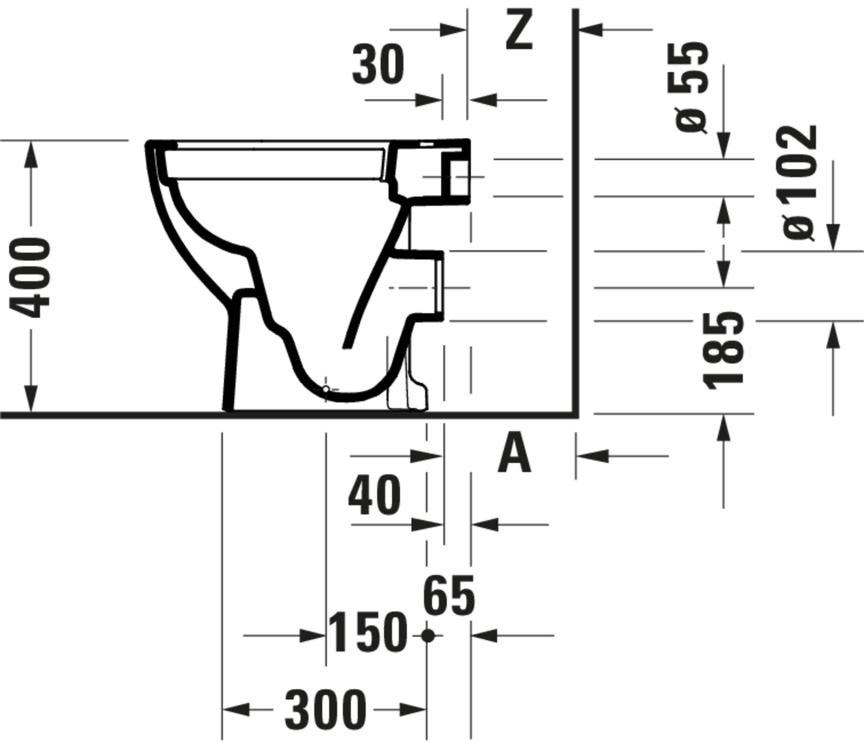 D-CODE #203609 staand closet PK. wit diepspoel rimless hoogglans (excl. zitting) Duravit