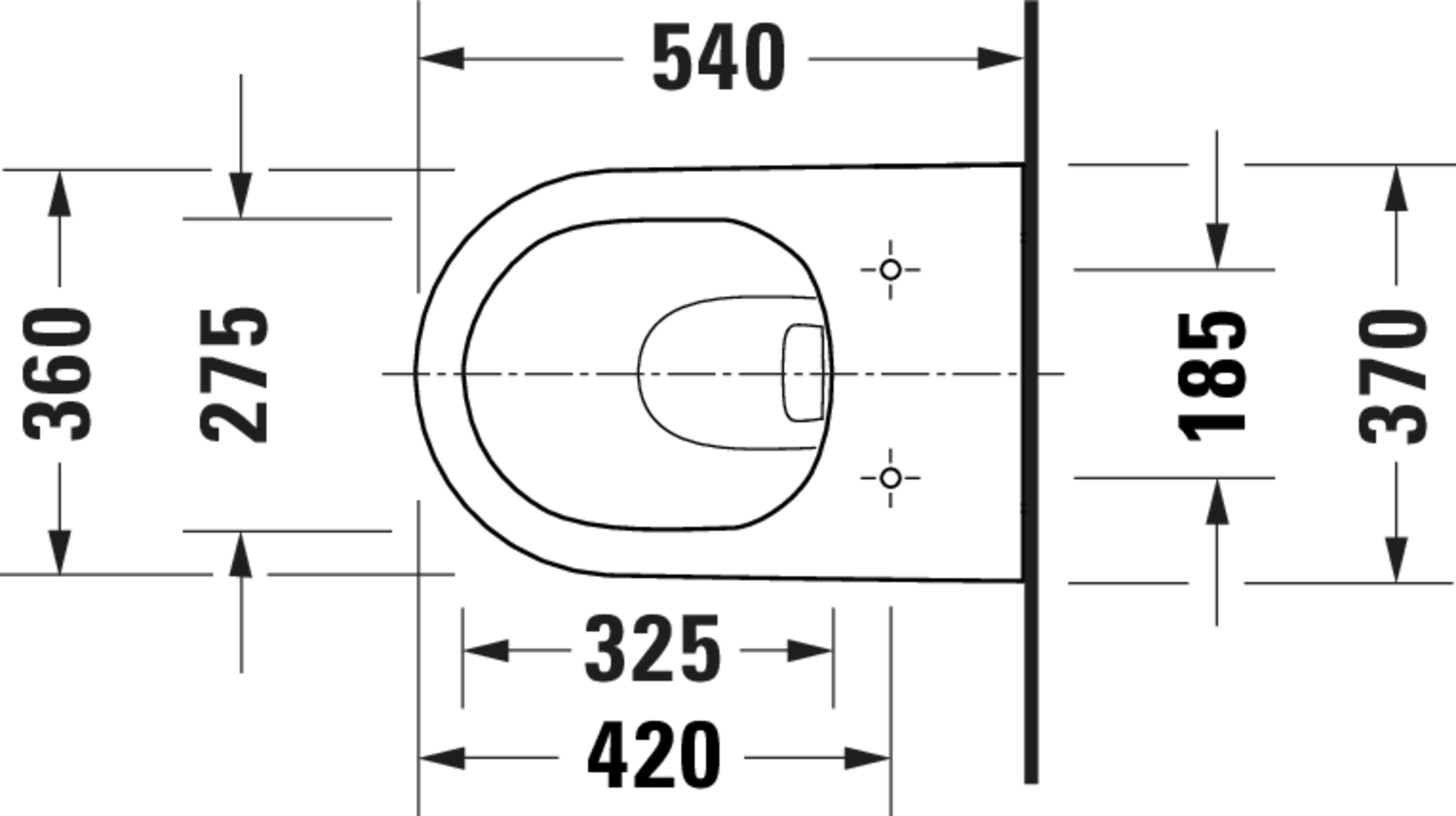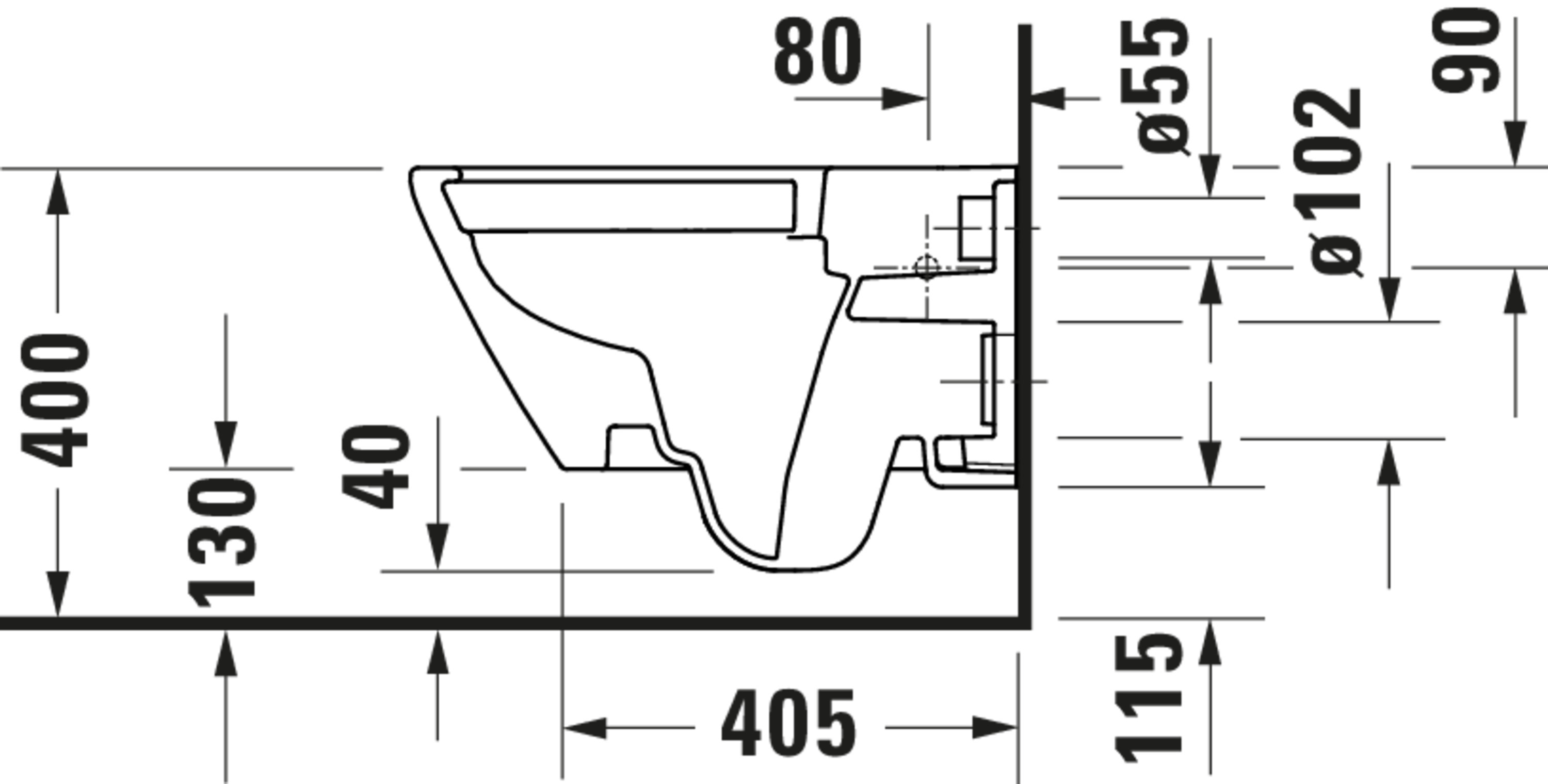 D-CODE #290309 wandcloset wit hoogglans 540mm met voorgemon. scharnieren (excl. zitting) Duravit