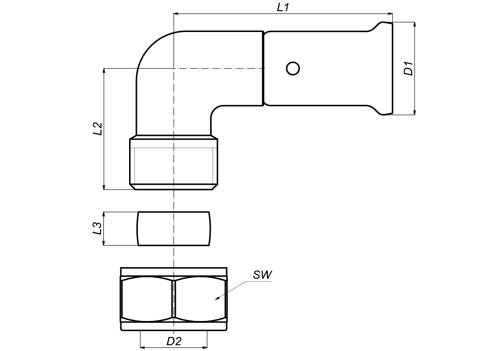 - Uitwendige buisdiameter aansluiting 2: 15 mm