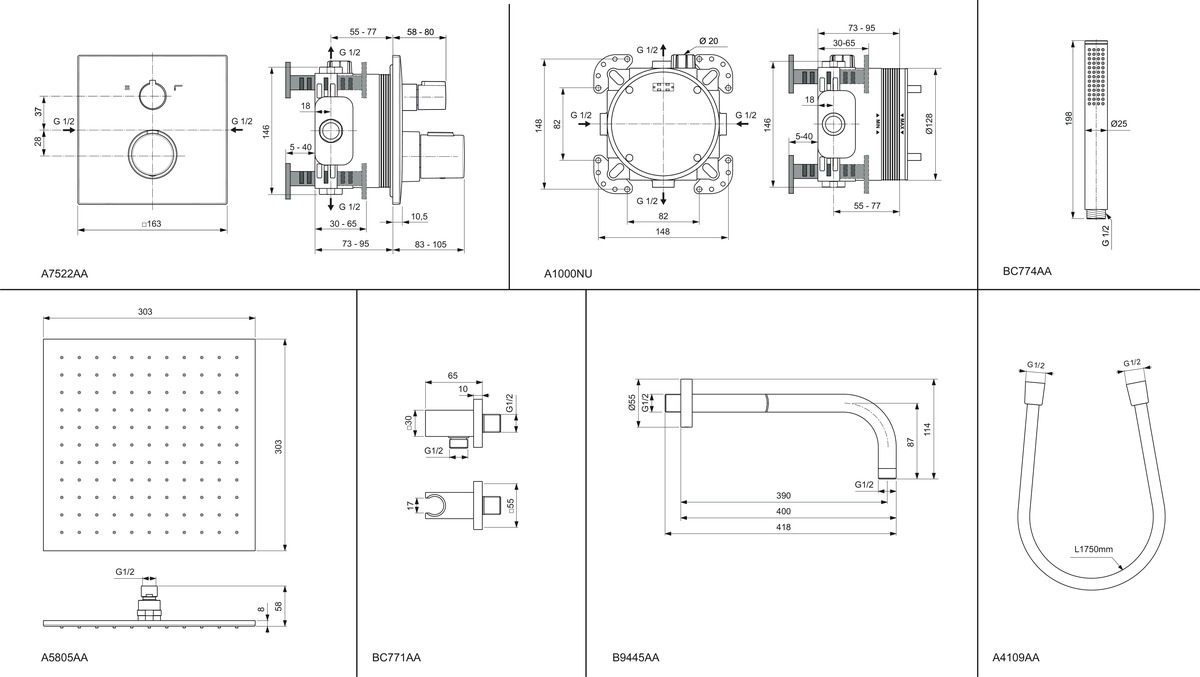 Showerpower C100 pak vierkant chroom Idealrain/Ceratherm Ideal Standard