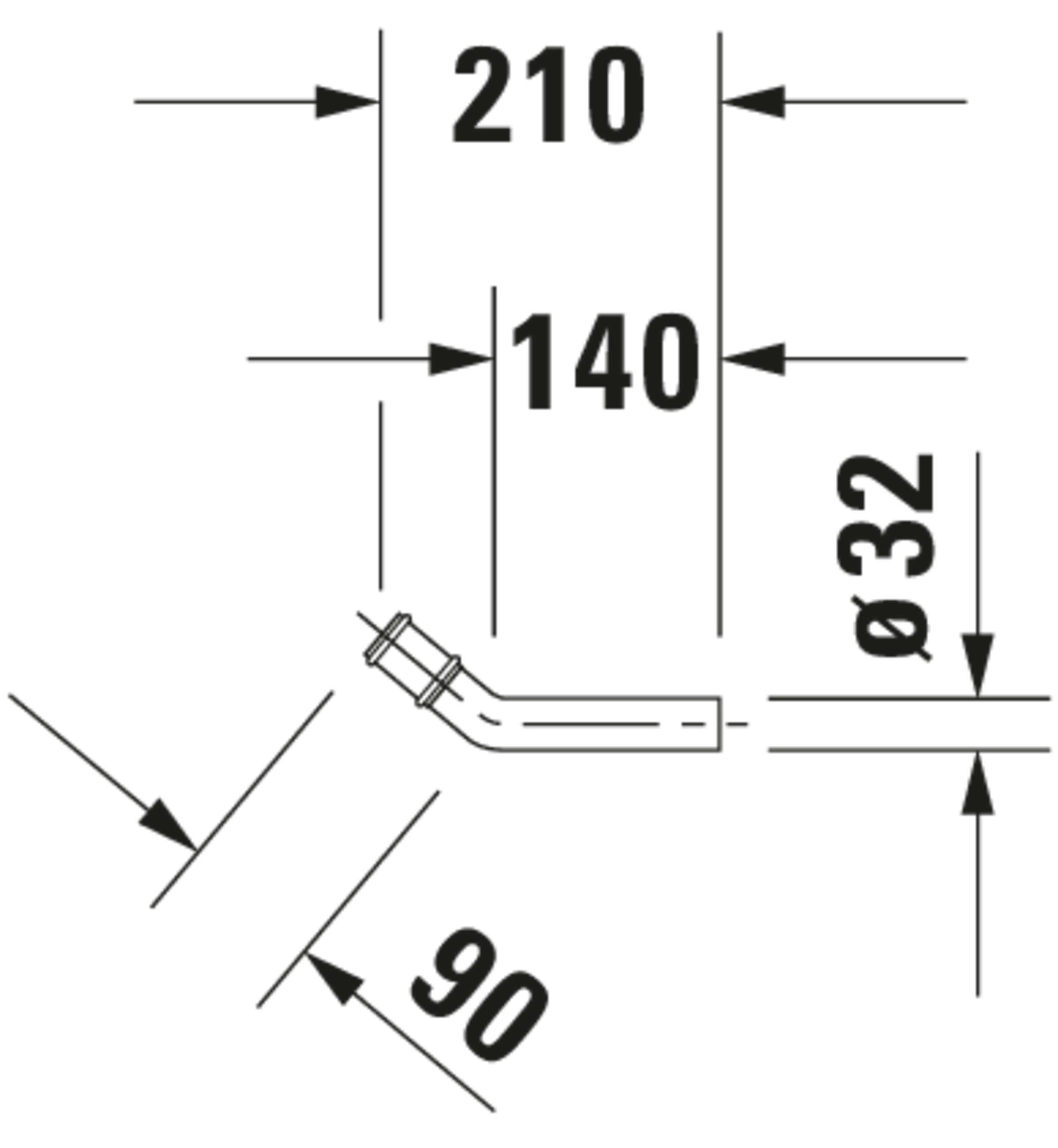 - Uitwendige buisdiameter spoelbocht reservoirzijde: 32 mm