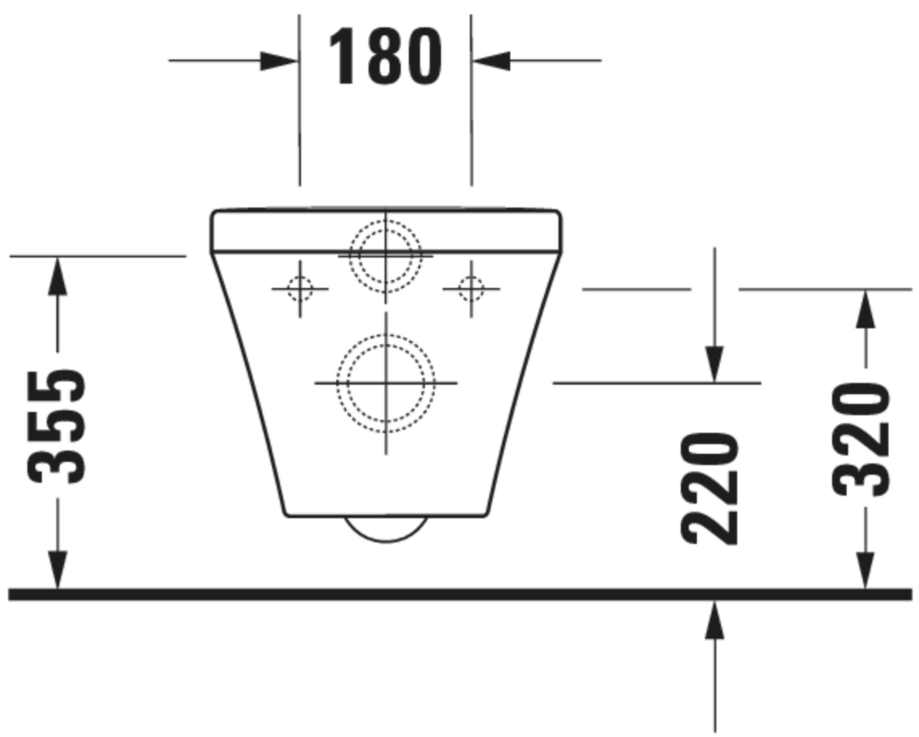 - Hartmaat bevestiging wandcloset: 180 mm
