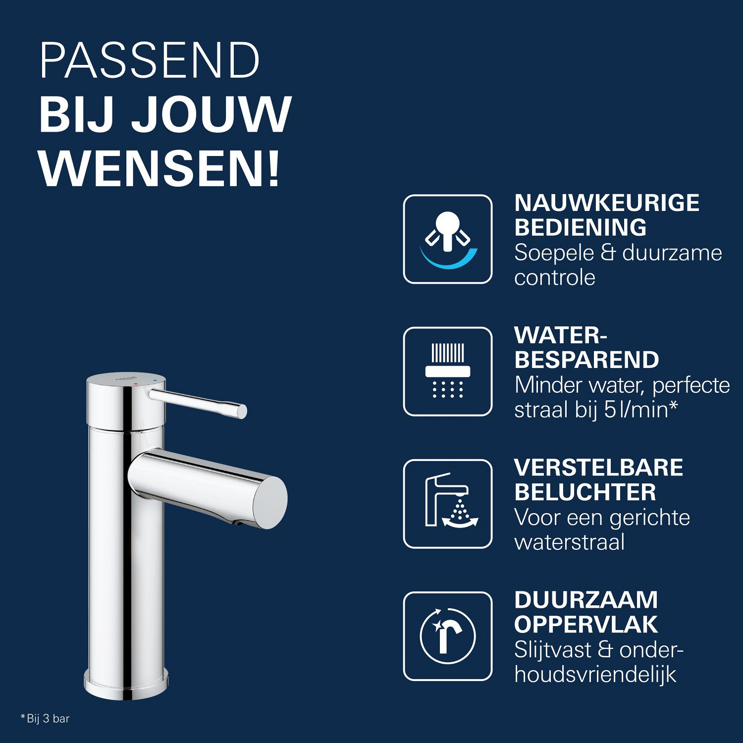 Essence S-size wastafelmengkraan chroom gladdy body Grohe