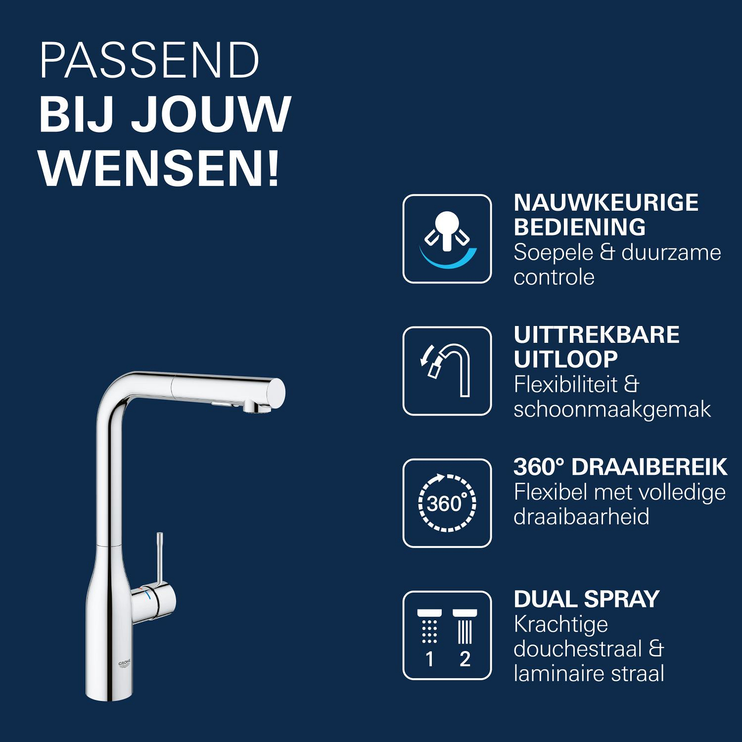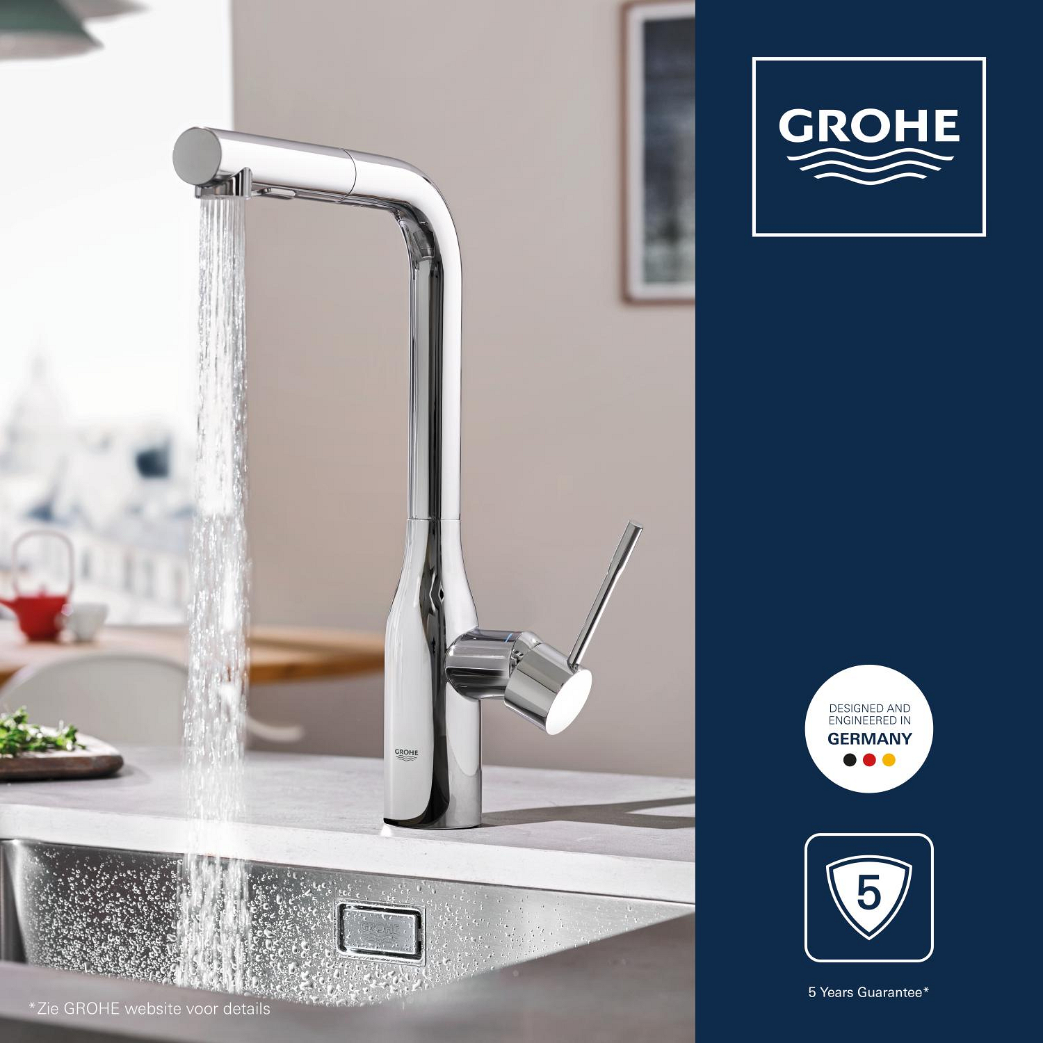 Essence keukenmengkraan L-uitloop chroom met uittrekbare uitloop Grohe