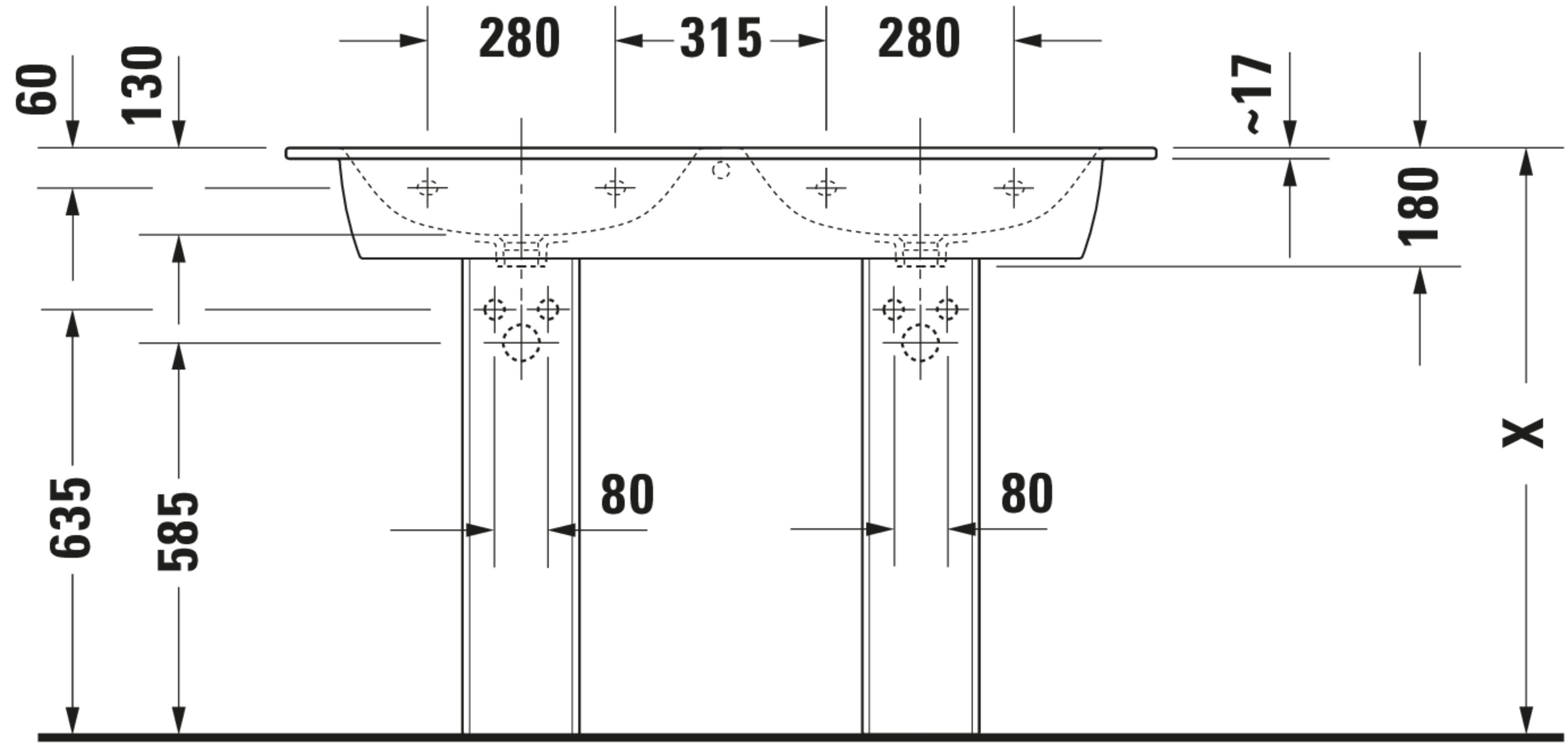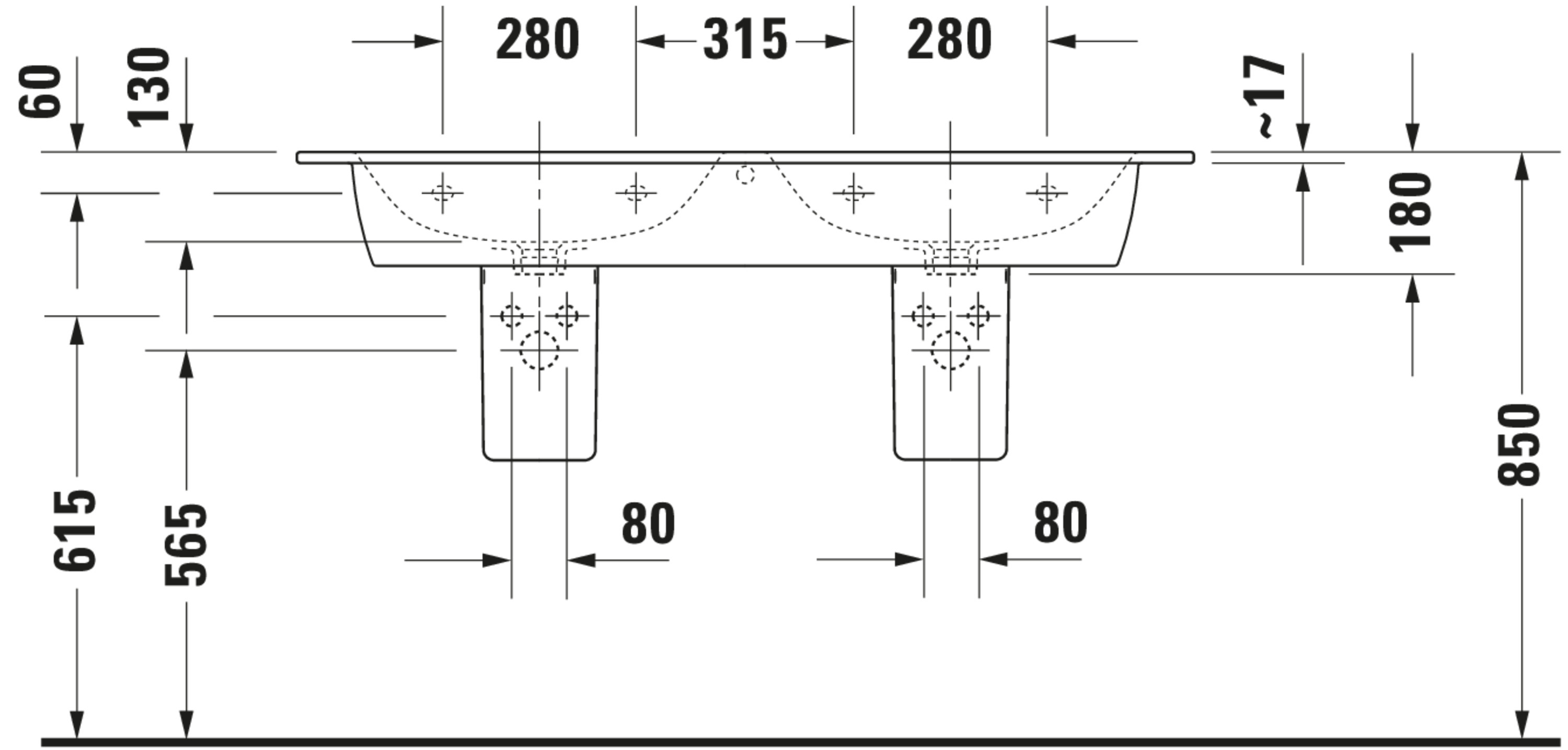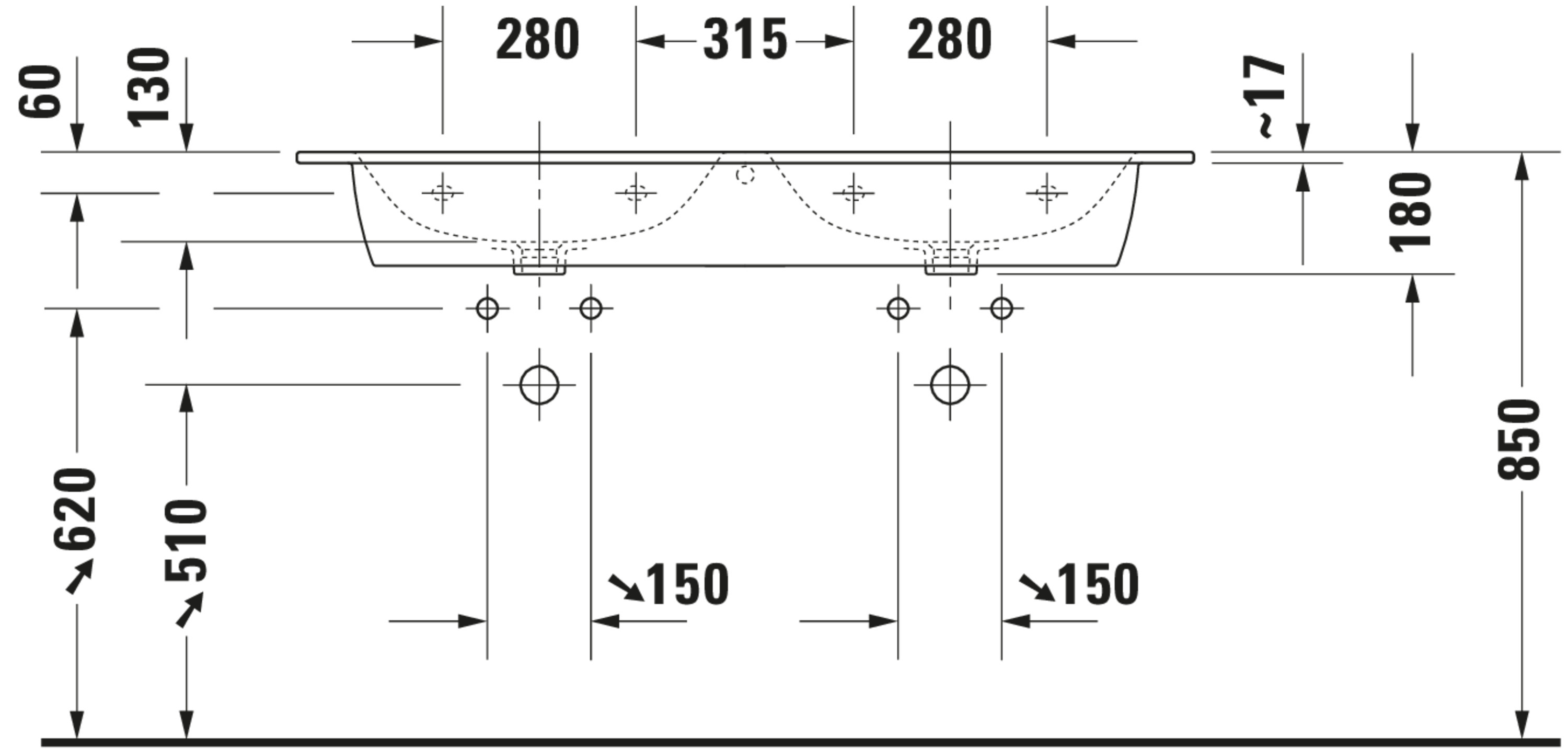 Dubbele wastafel wit hoogglans 1300mm ME by Starck Duravit