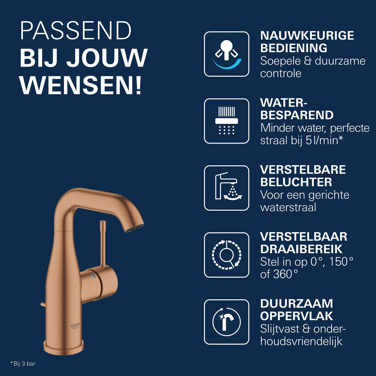 Essence M-size wast.mengkraan hoog warm sunset geborsteld (mat bronskleurig) incl. waste Grohe
