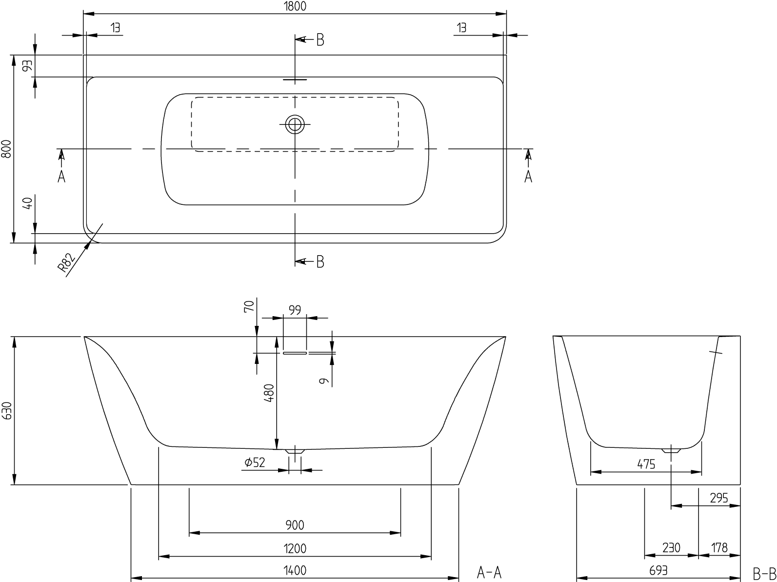 Back-to-wall bad 800x1800mm White Alpine Subway 3.0 UBQ180SBW9CS00V-01 Villeroy & Boch
