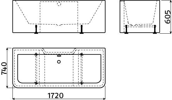 Ligbad INBE back-to-wall 172x74cm wit acryl met overloop incl. stop/go-plug chroom en sifon Clou