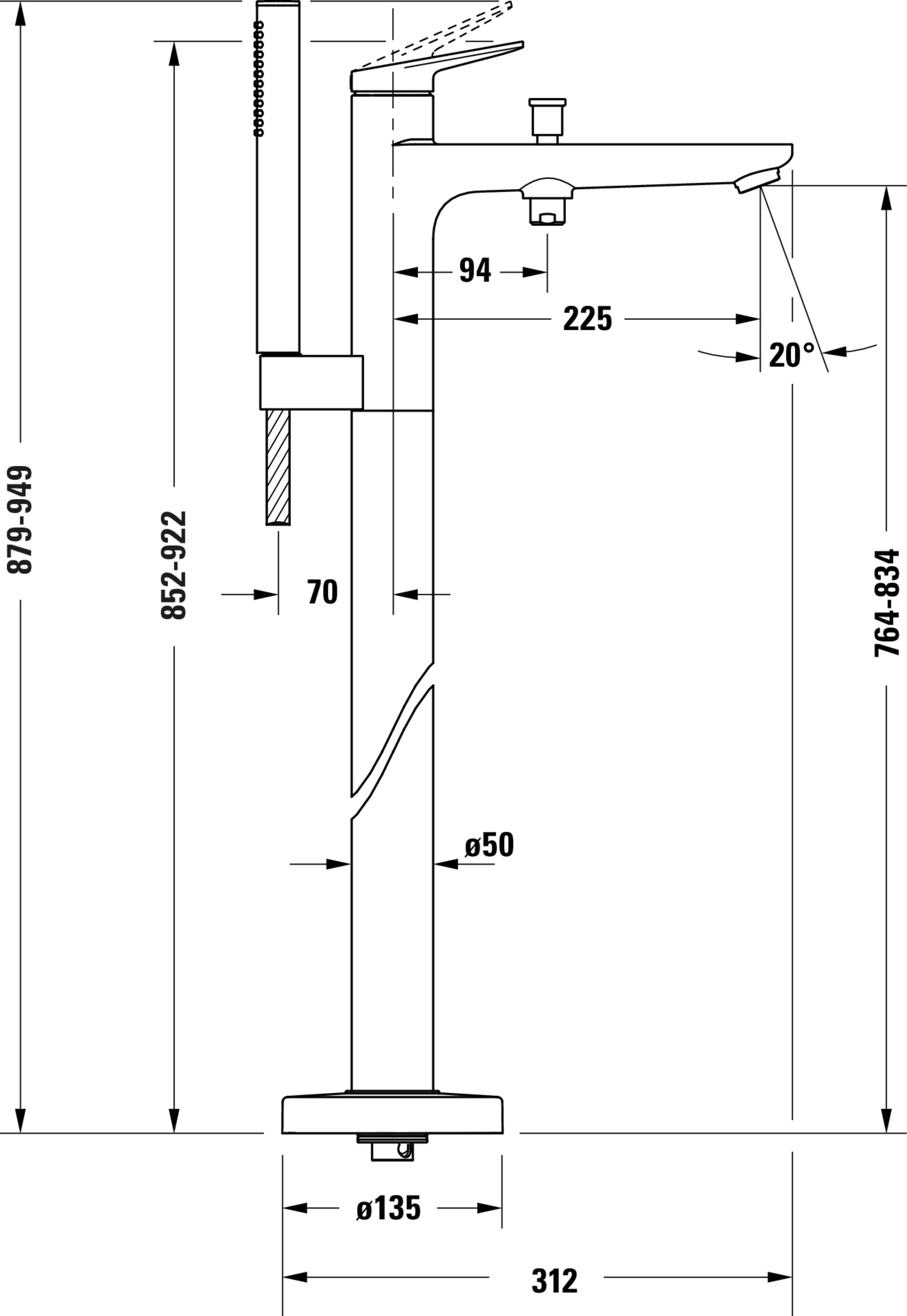 Wave 1-hendel badmengkraan vrijstaand rvs geborsteld met handdouche excl. inbouwdeel Duravit