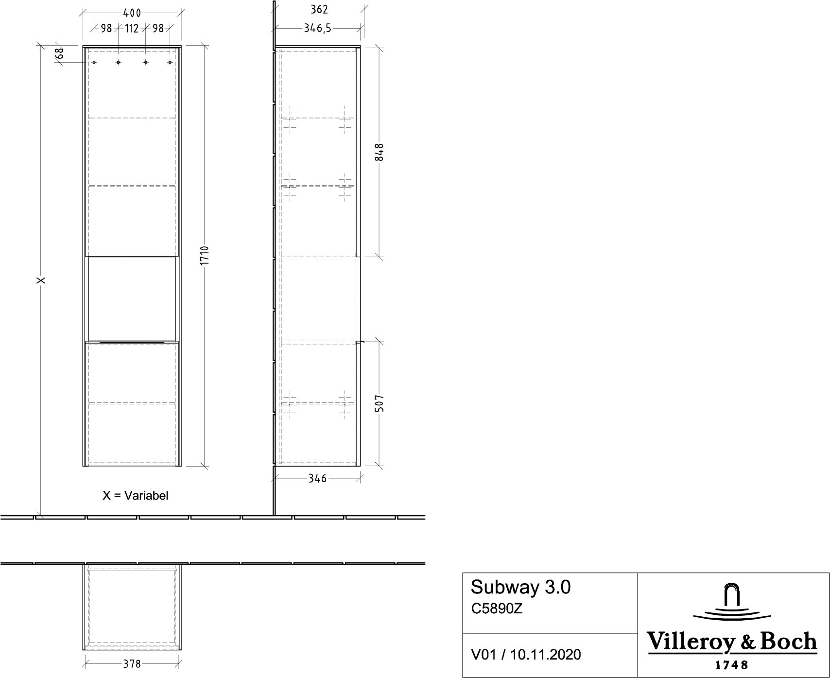 Hoge kast Subway 3.0 400 x 1710 x 362 mm Graphite C58900VR Villeroy & Boch