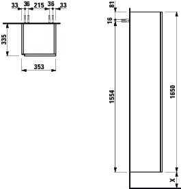 Hoge kast 35 5x35 5x165 1deur scharnierRe Redraaiend spe.col Laufen