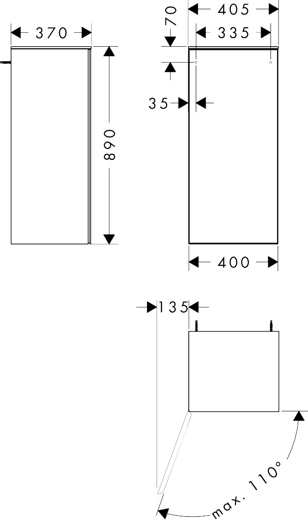 Kast middelhoog Xevolos E 400/360 scharnier links Matt White hansgrohe