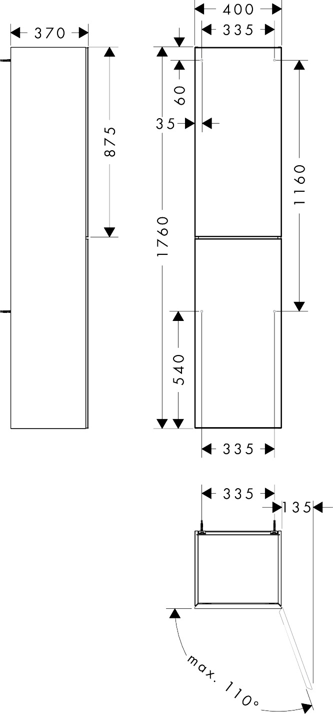 Kast hoog Xevolos E 400/360 scharnier rechts Sand Matt Beige hansgrohe