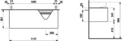 Lade Ele 1 Lade Uitsparing rechtsWastafel H816341/2 cnmq Laufen