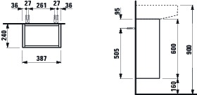Onderbouwkast 600X390X240 Wastafel H815341 schanier Re cuiv Laufen