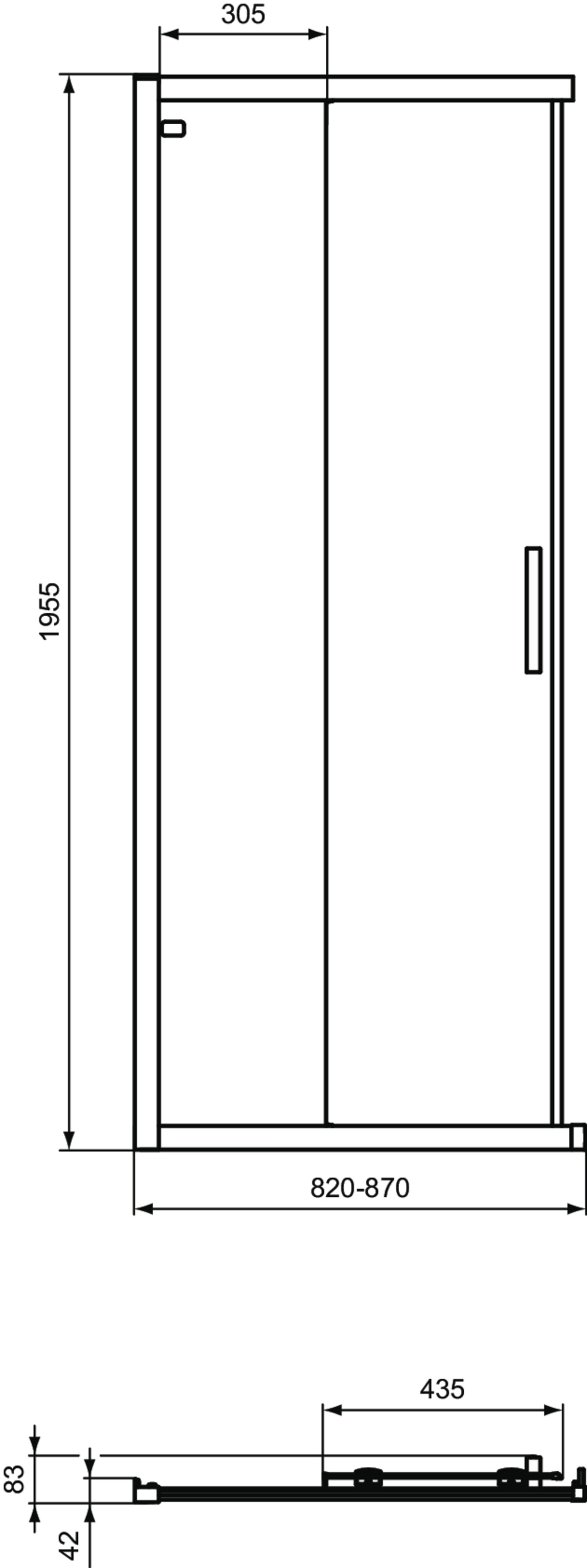 Hoekinstap Connect-2 85cm omkeerbaar zilver (deel 1 van 2) Ideal Standard