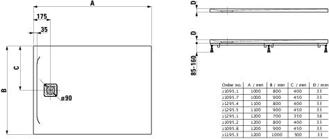 Douchevloer 1000x800mm rechthoekig wit Marbond composiet afvoer aan korte zijde Laufen